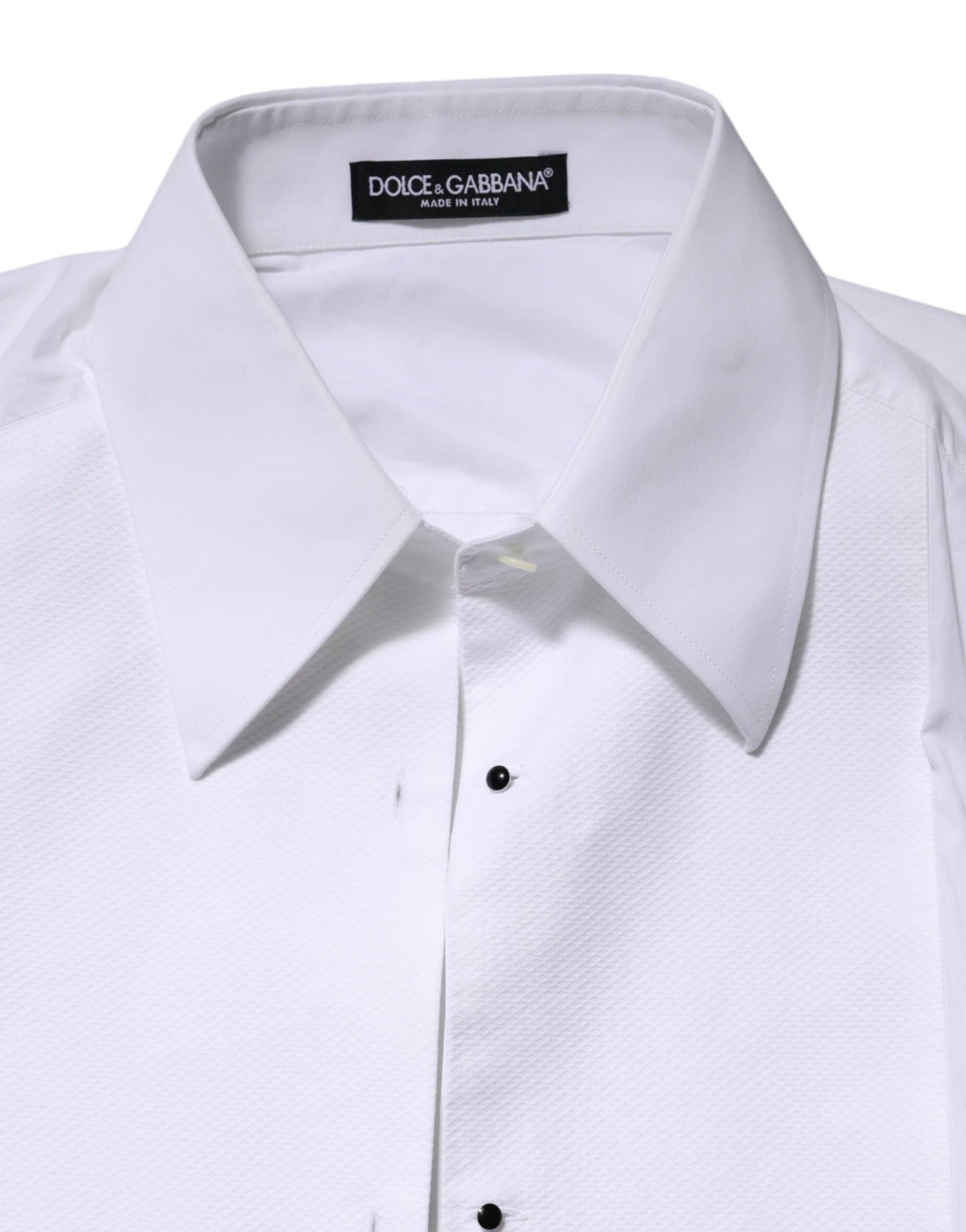 Dolce & Gabbana White Cotton Long Sleeves Collared Top Shirt