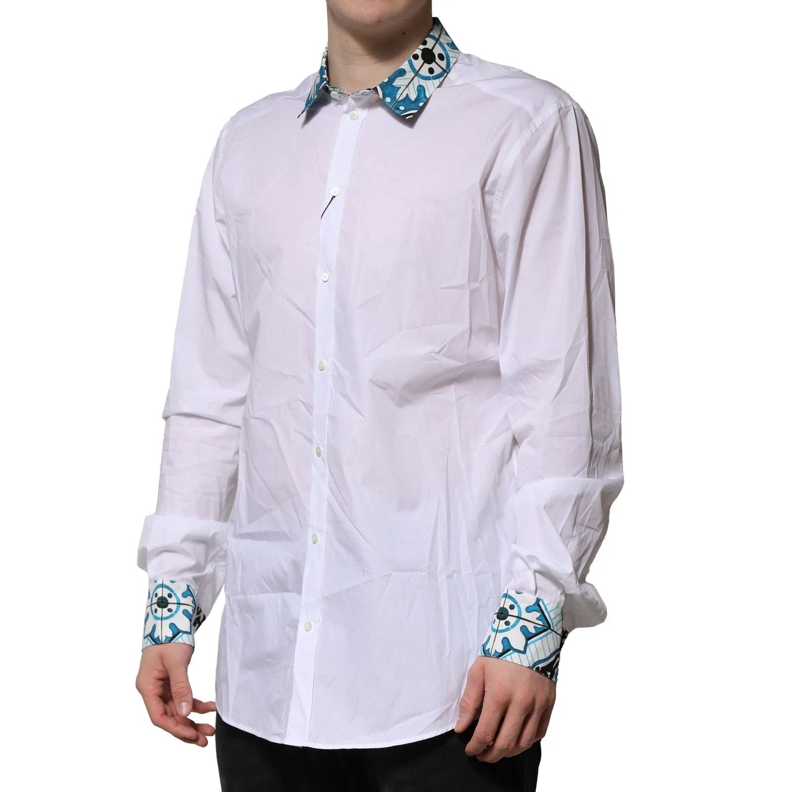 Dolce & Gabbana White Majolica Detailing GOLD Dress Shirt