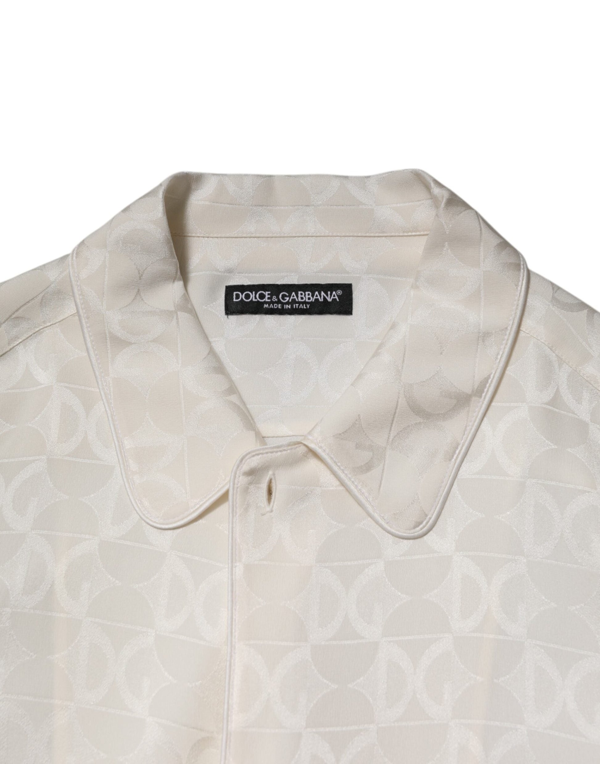 Dolce & Gabbana White Silk DG Logo Print Long Sleeves Shirt