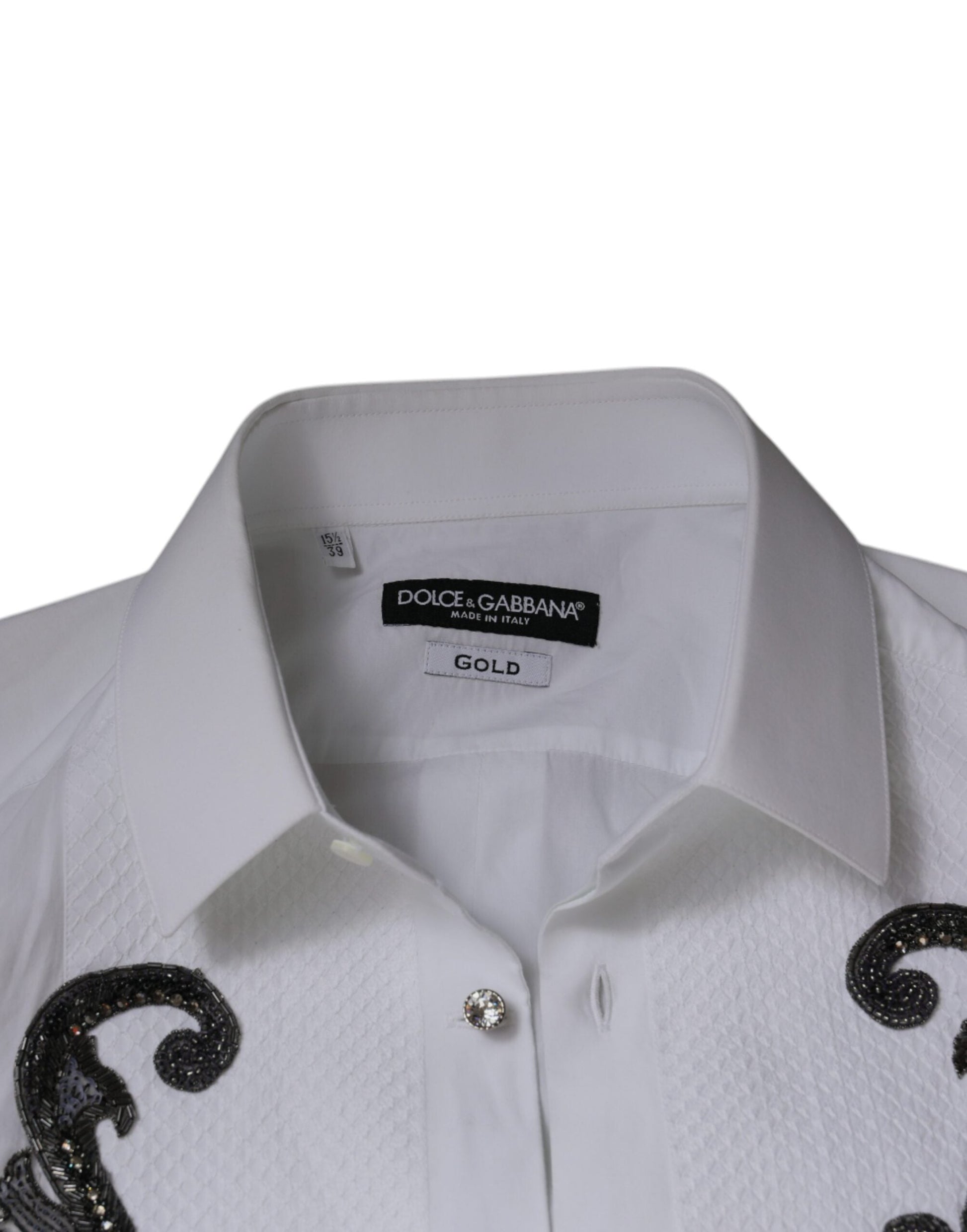 Dolce & Gabbana White Slim Fit Baroque GOLD Men Dress Shirt