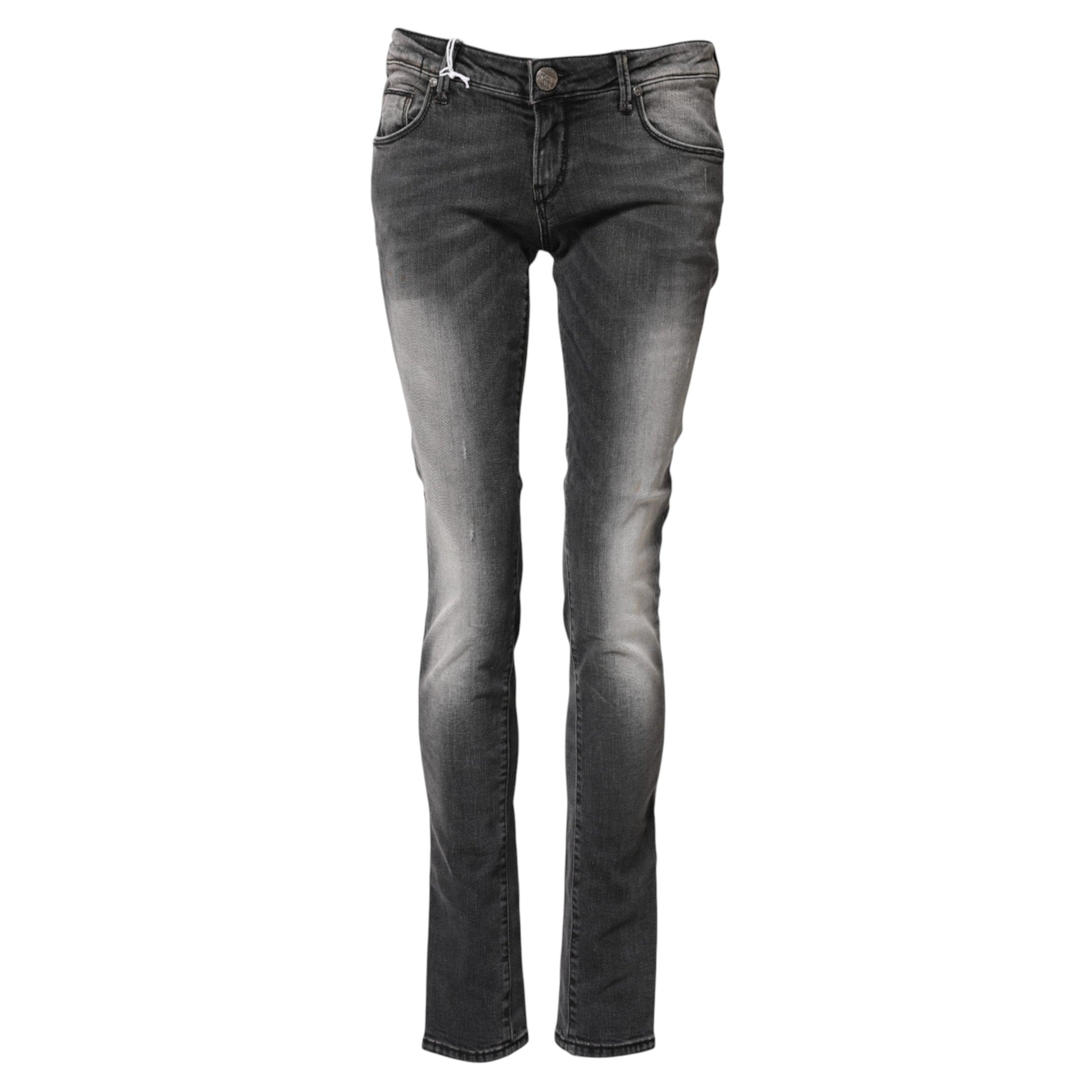 Acht Dark Gray Cotton Slim Fit Denim Low Waist Denim Jeans