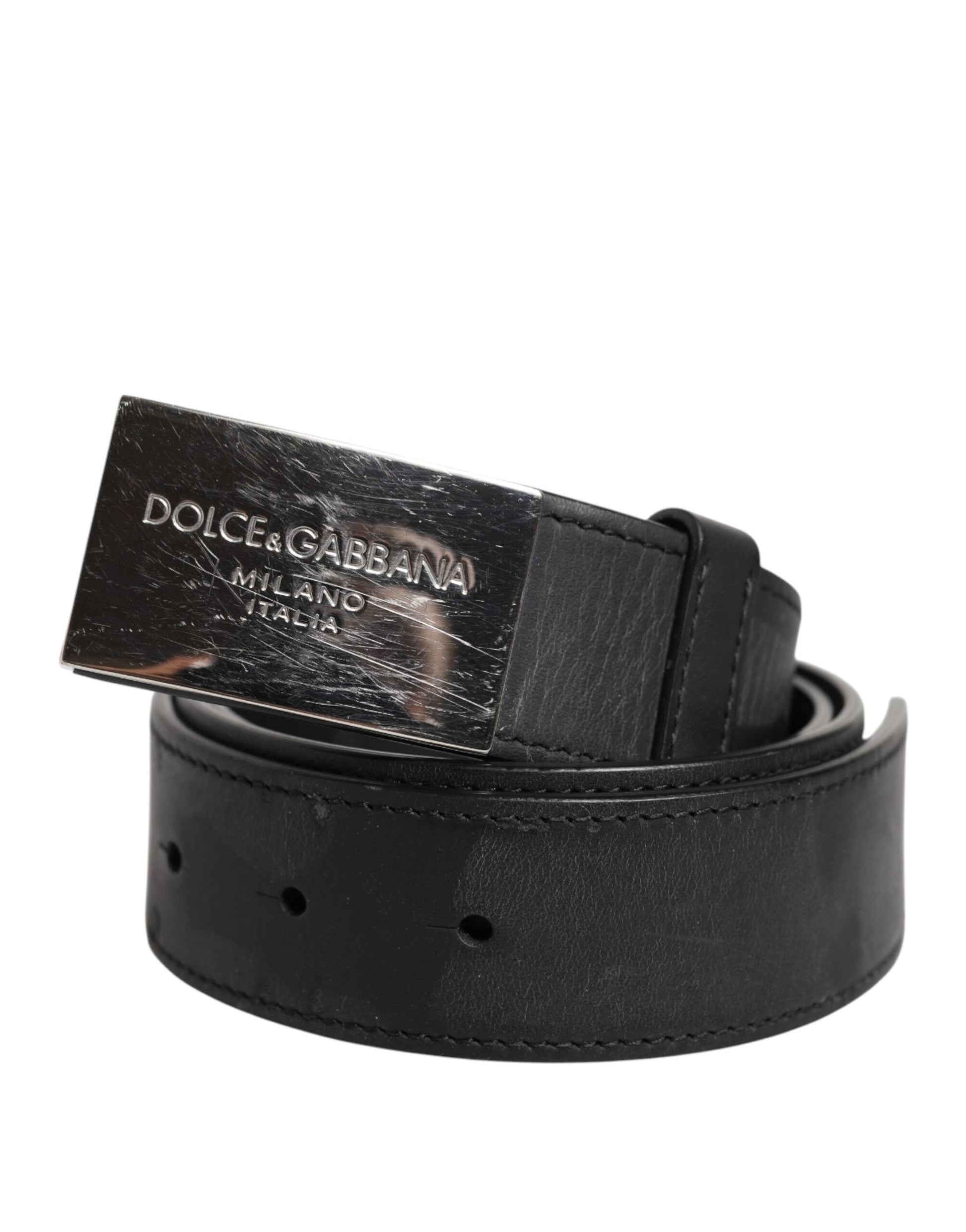 Dolce & Gabbana Black Leather Classic Metal Logo Buckle Belt