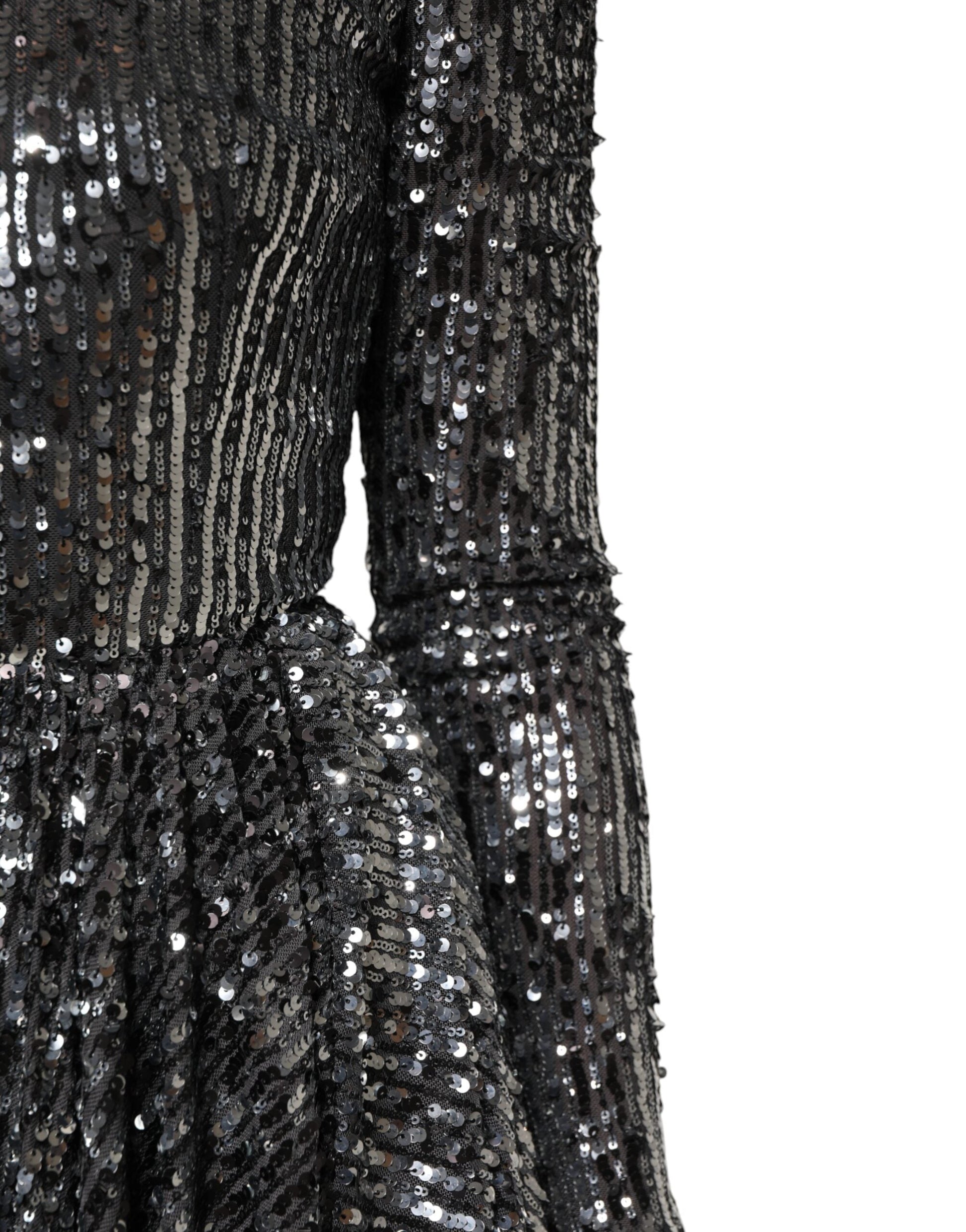Dolce & Gabbana Black Sequined Long Sleeves Midi A-line Dress