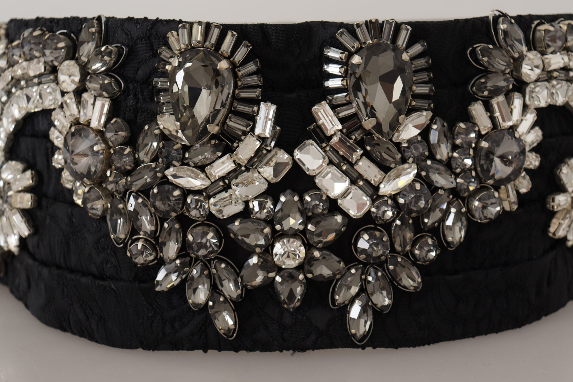 Dolce & Gabbana Black Silk Brass Crystal Embellished Waist Belt