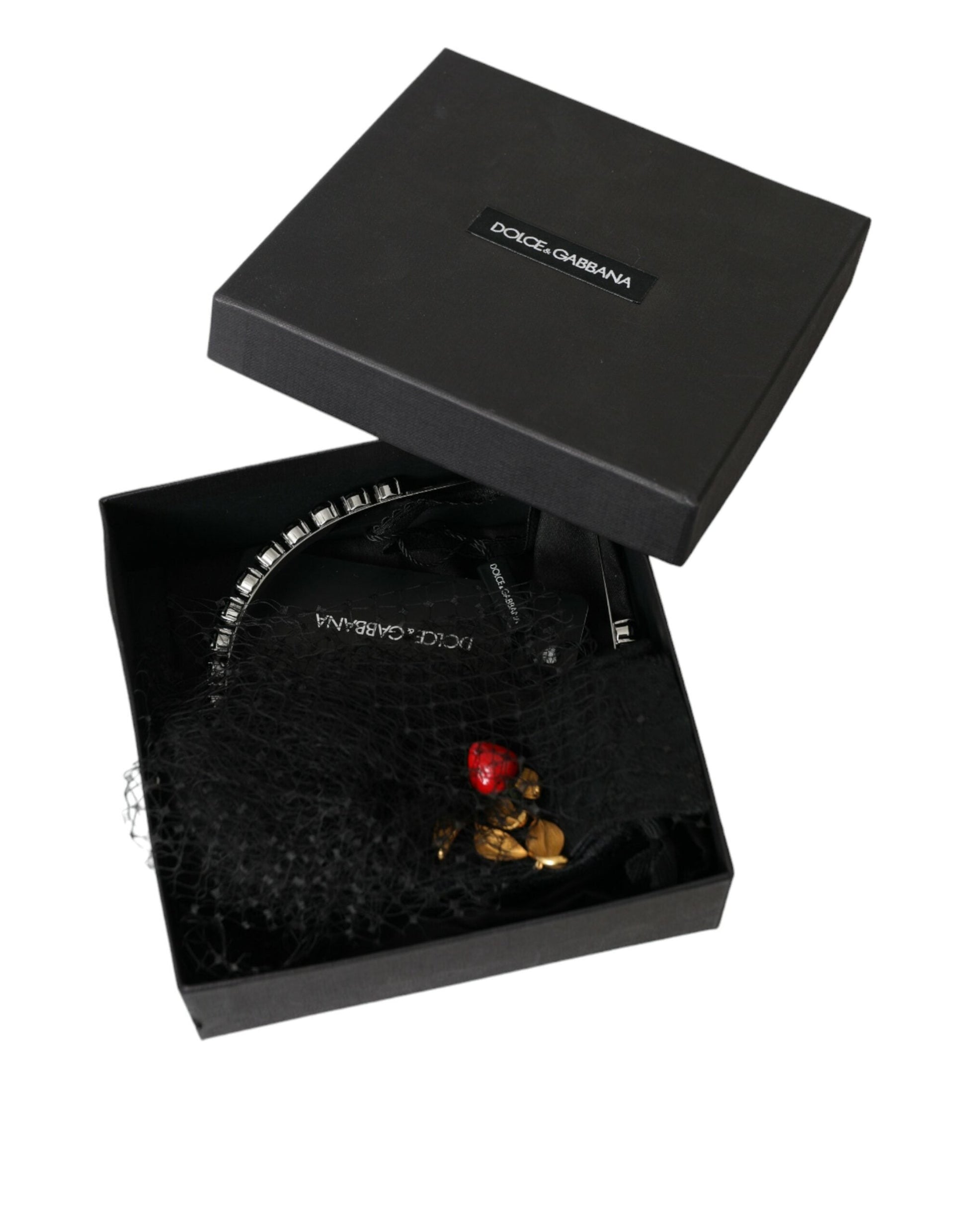 Dolce & Gabbana Black Strawberry Sicily Crystal Mesh Net Headband Diadem