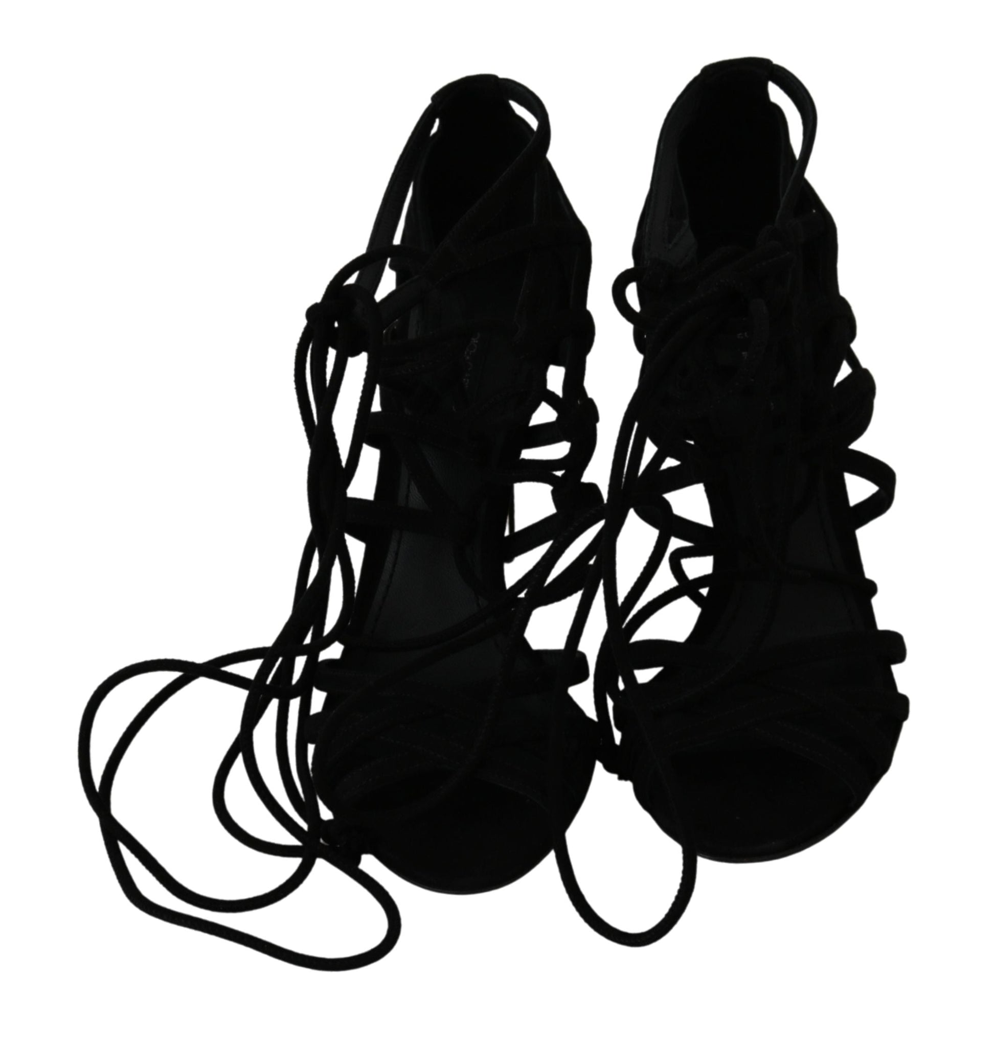 Dolce & Gabbana Black Suede Strap Stilettos Shoes Sandals