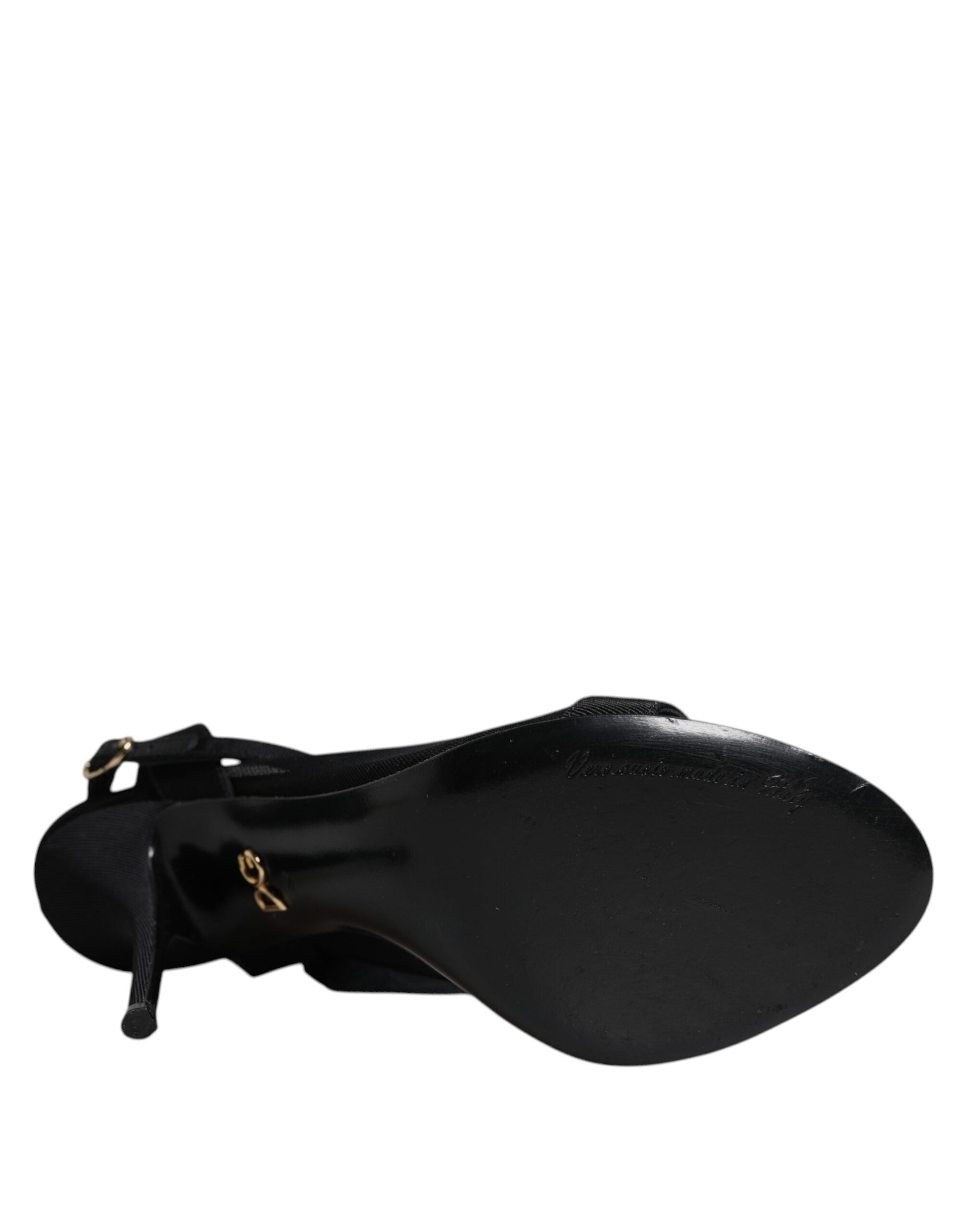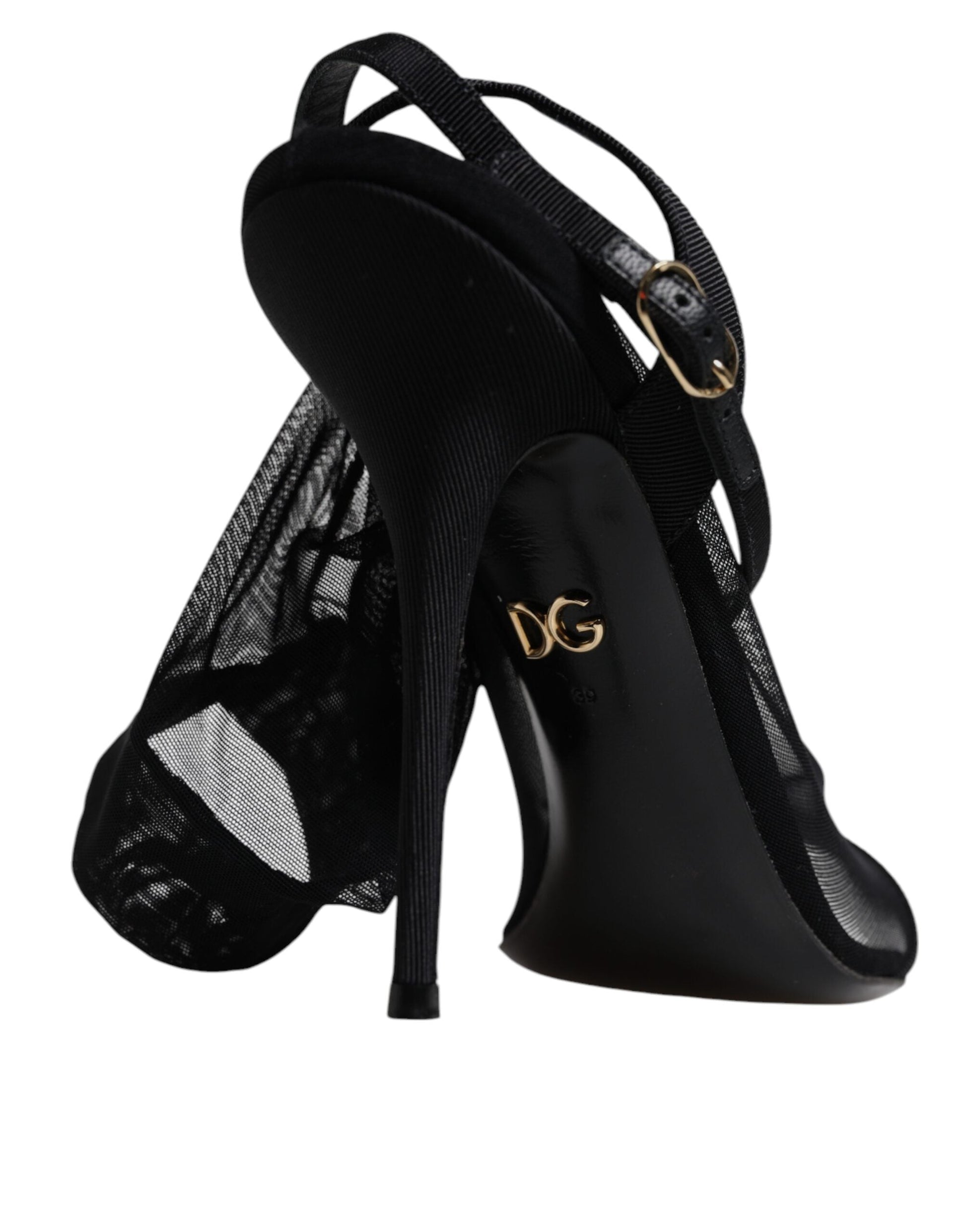 Dolce & Gabbana Black Tulle Stretch Heels Sandals Shoes