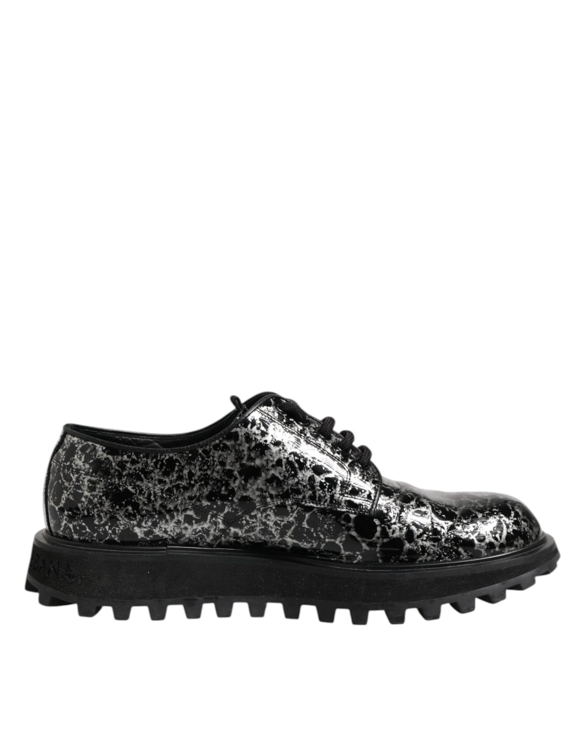 Dolce & Gabbana Black White Calfskin Chunky Derby Shoes