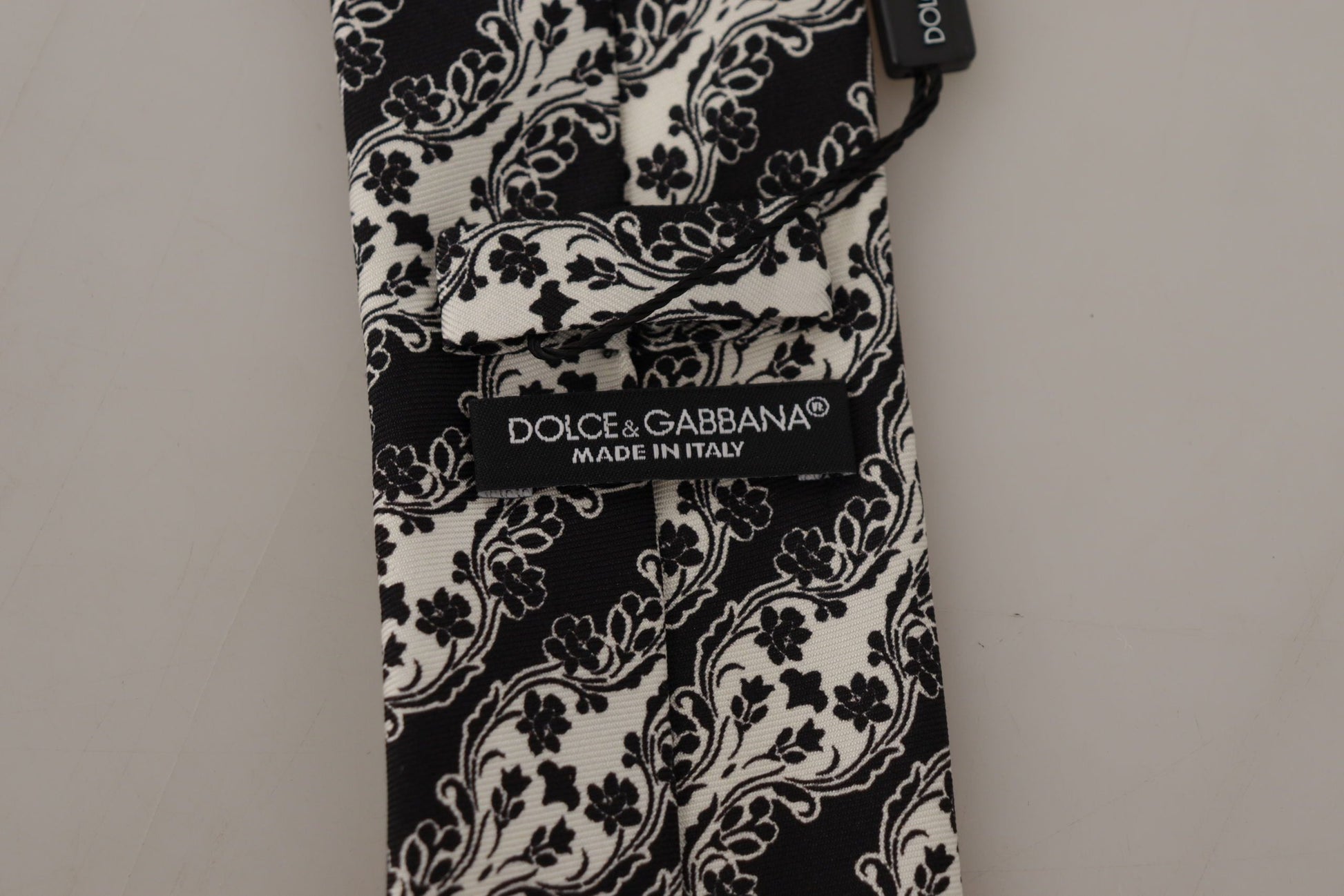 Dolce & Gabbana Black White Flower 100% Silk Print Adjustable Accessory Tie