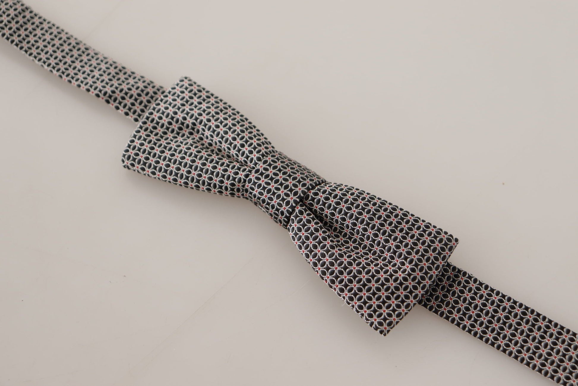 Dolce & Gabbana Black White Flower Pattern Silk Neck Papillon Tie