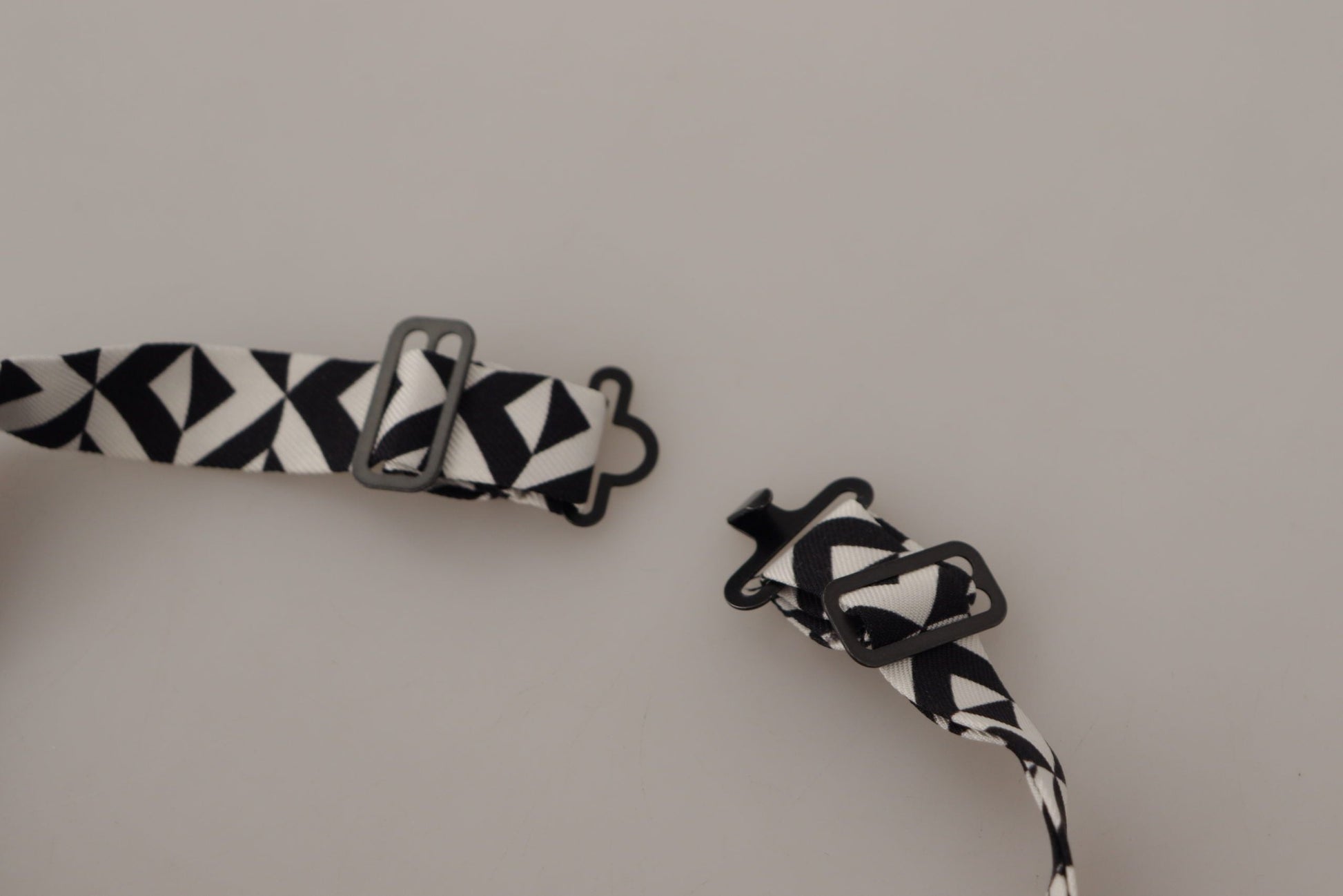 Dolce & Gabbana Black White Geometric 100% Silk Adjustable Accessory Tie