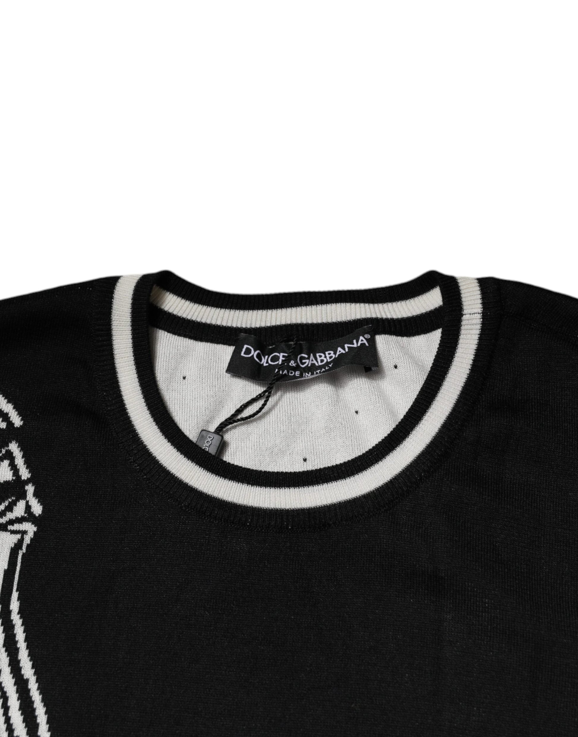 Dolce & Gabbana Black White Guitar Silk Crew Neck Sweater