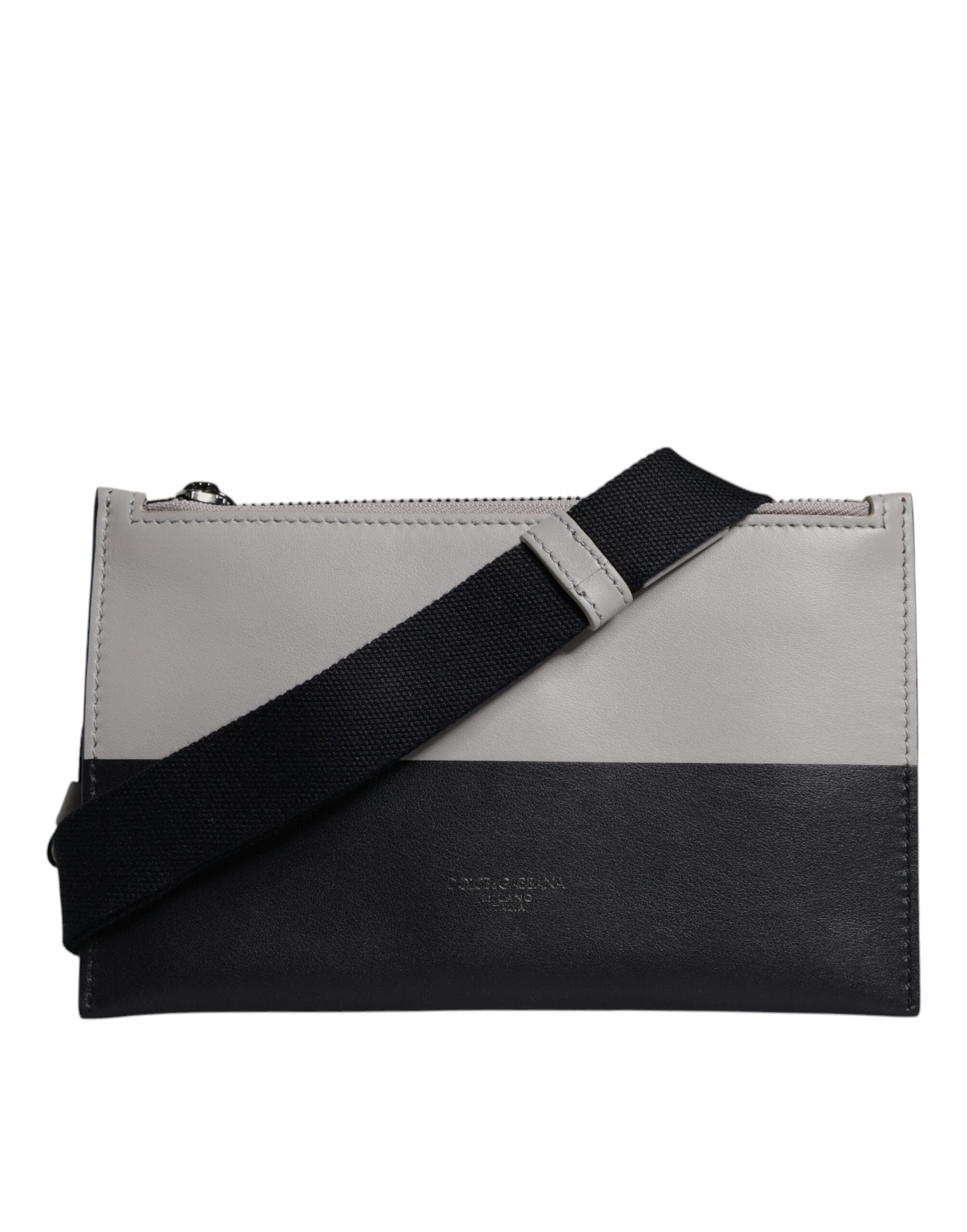 Dolce & Gabbana Black White Leather Logo Embossed Crossbody Bag