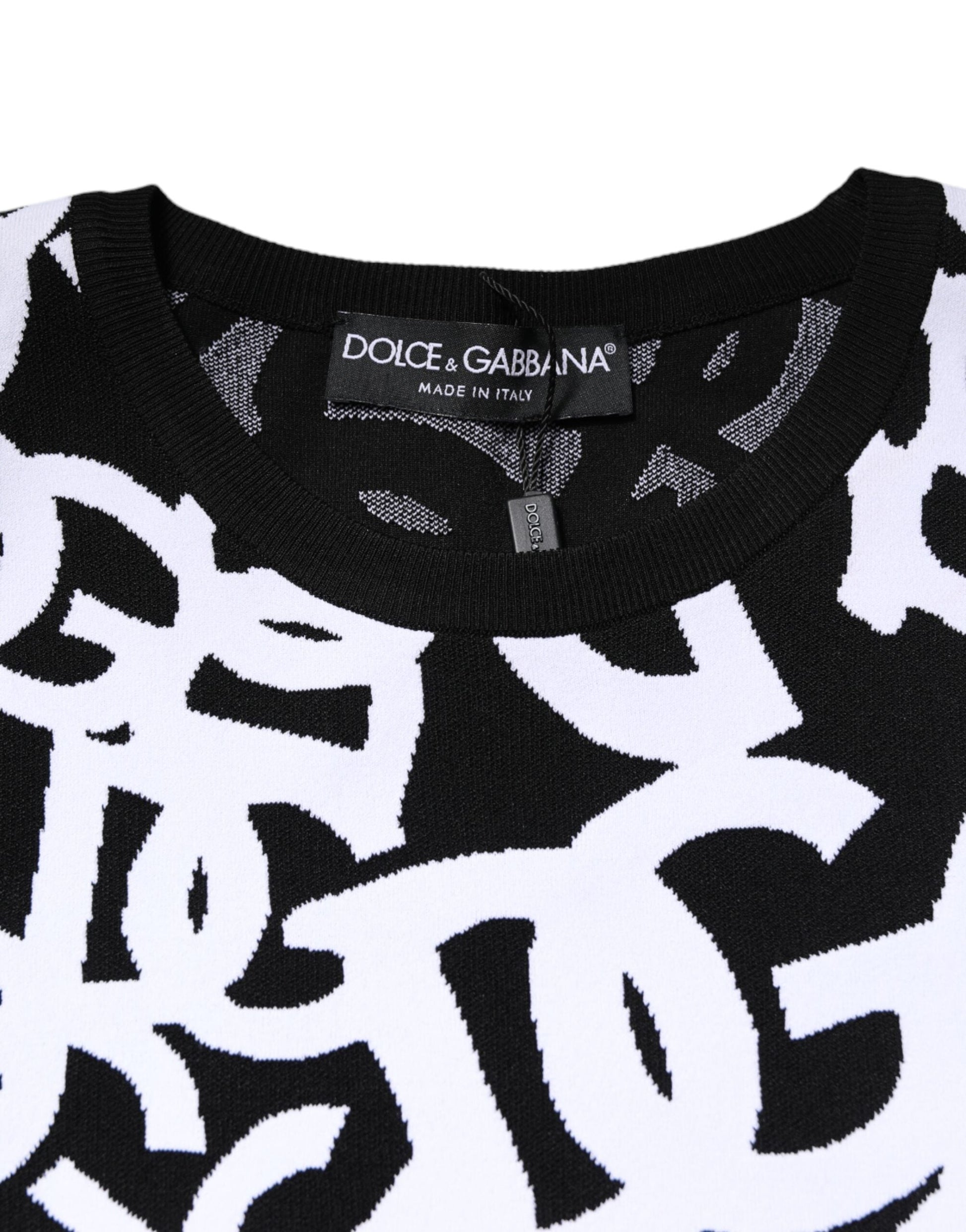 Dolce & Gabbana Black White Logo Print Women Pullover Sweater