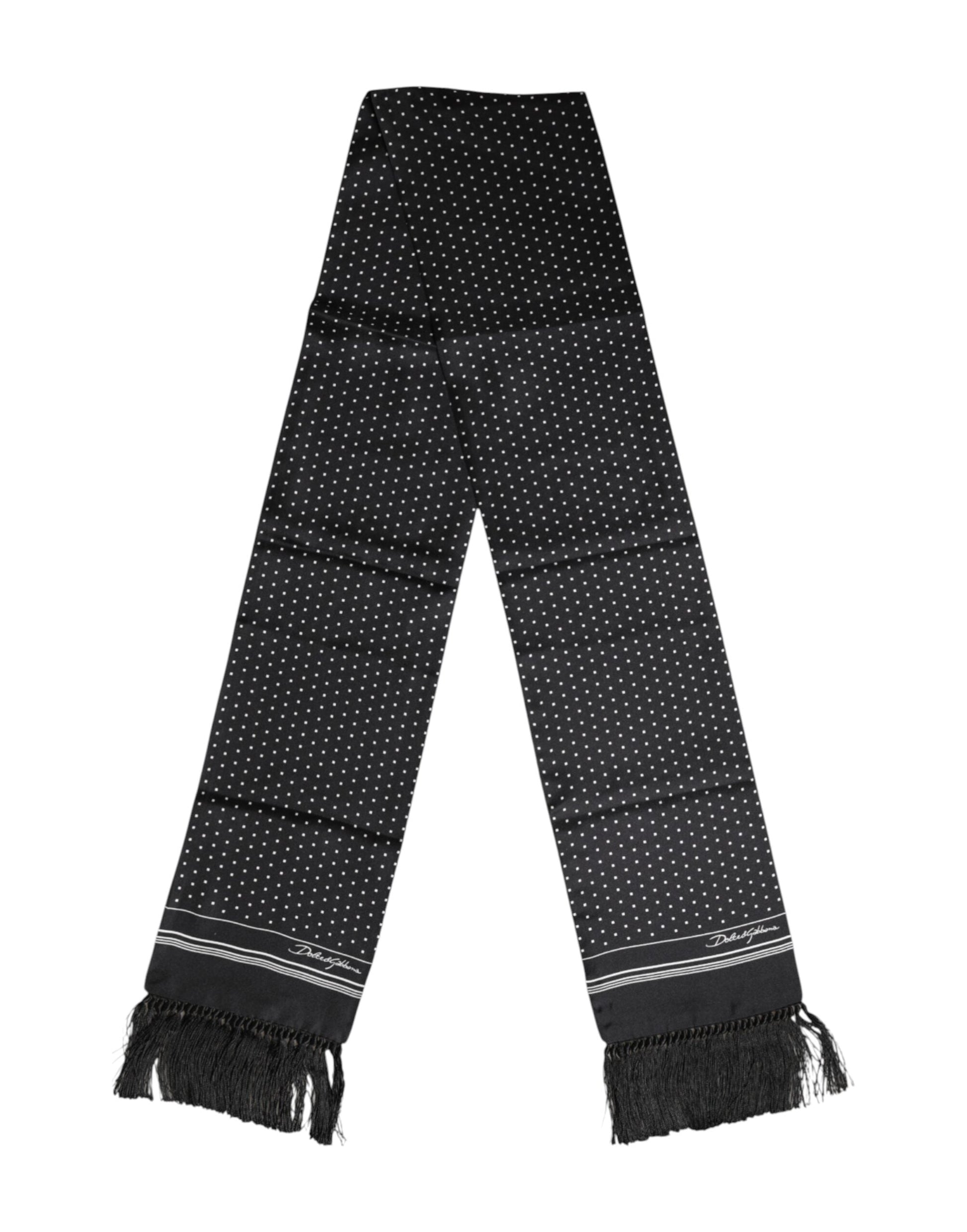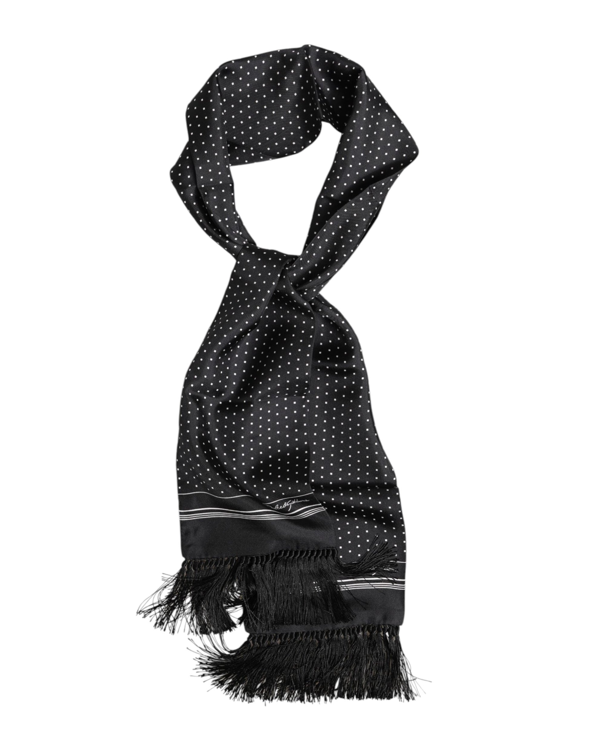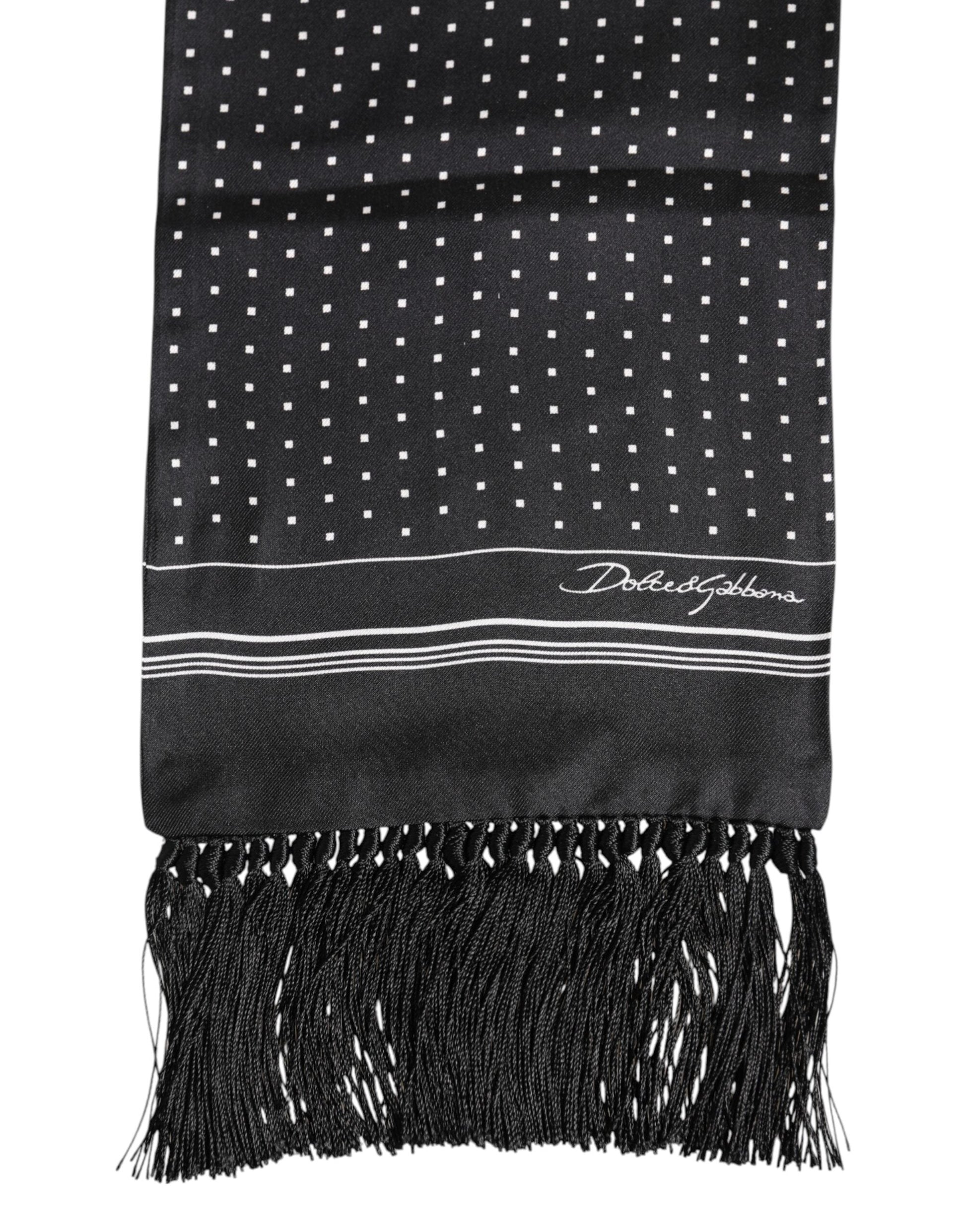 Dolce & Gabbana Black White Polka Dot Fringes Foulard Scarf
