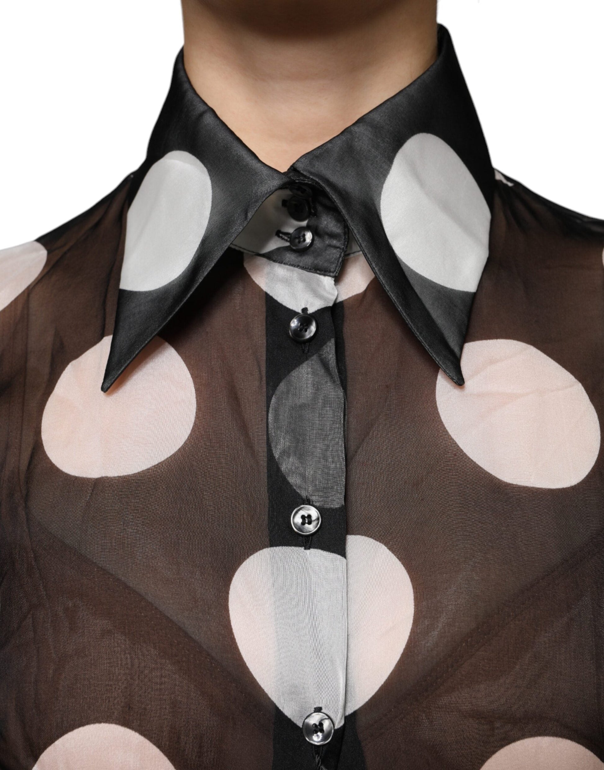 Dolce & Gabbana Black White Polka Dots Silk Long Sleeves Top