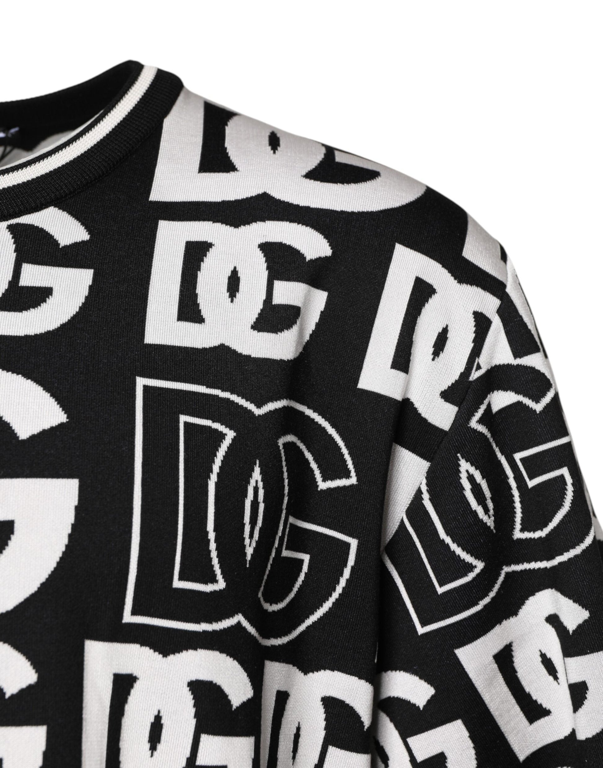 Dolce & Gabbana Black White Silk Knit DG Print T-shirt