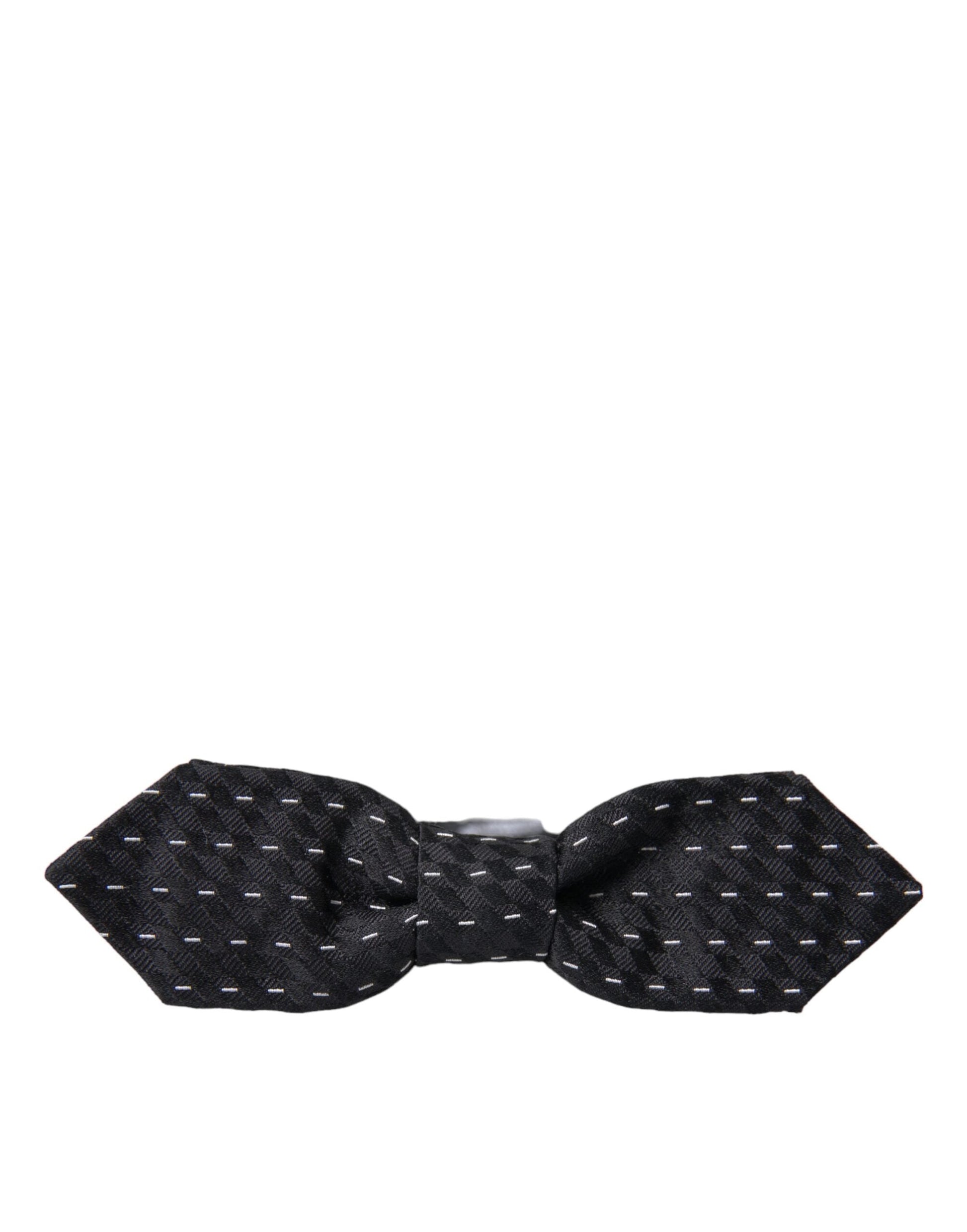 Dolce & Gabbana Black White Stitched Silk Men Neck Bow Tie