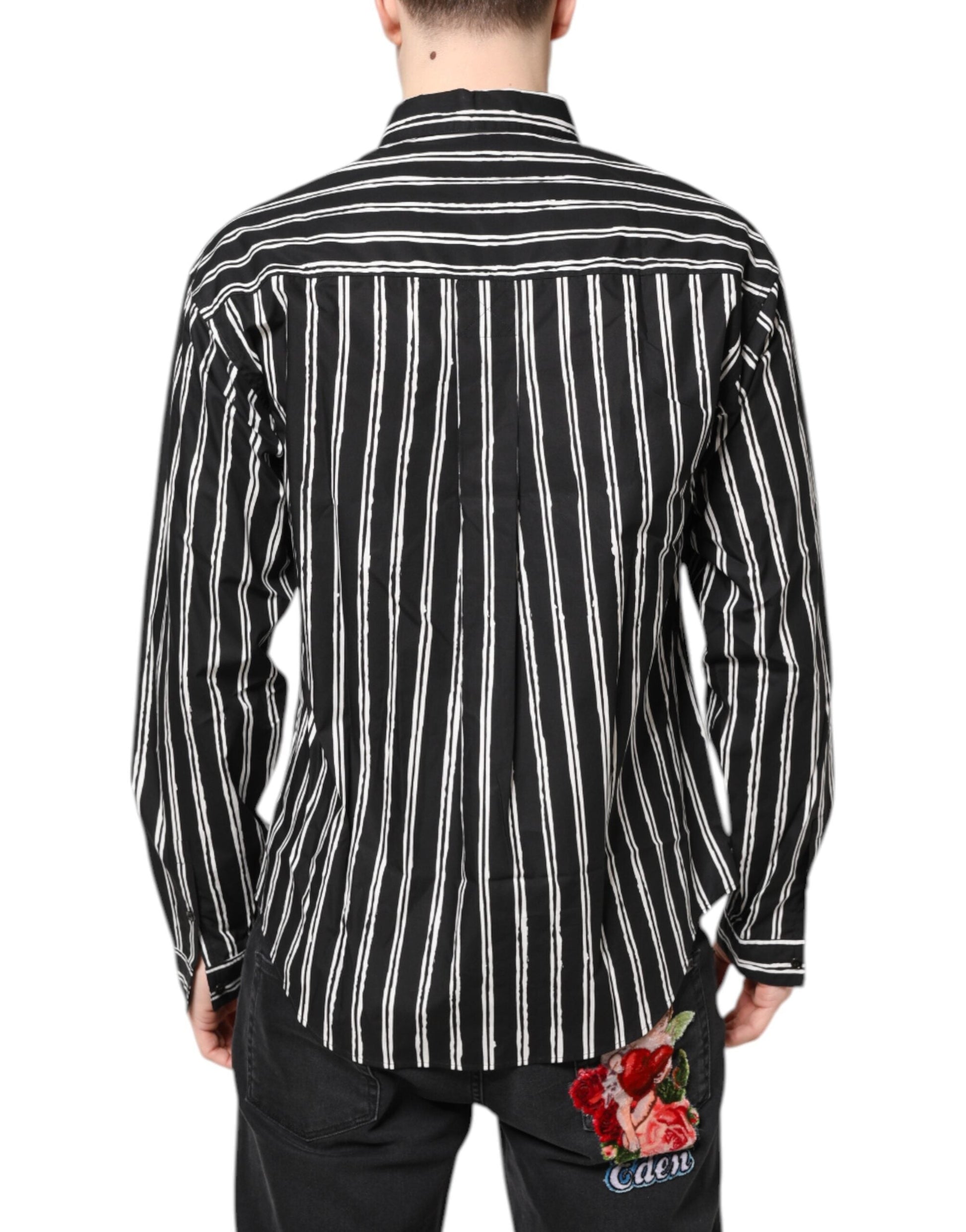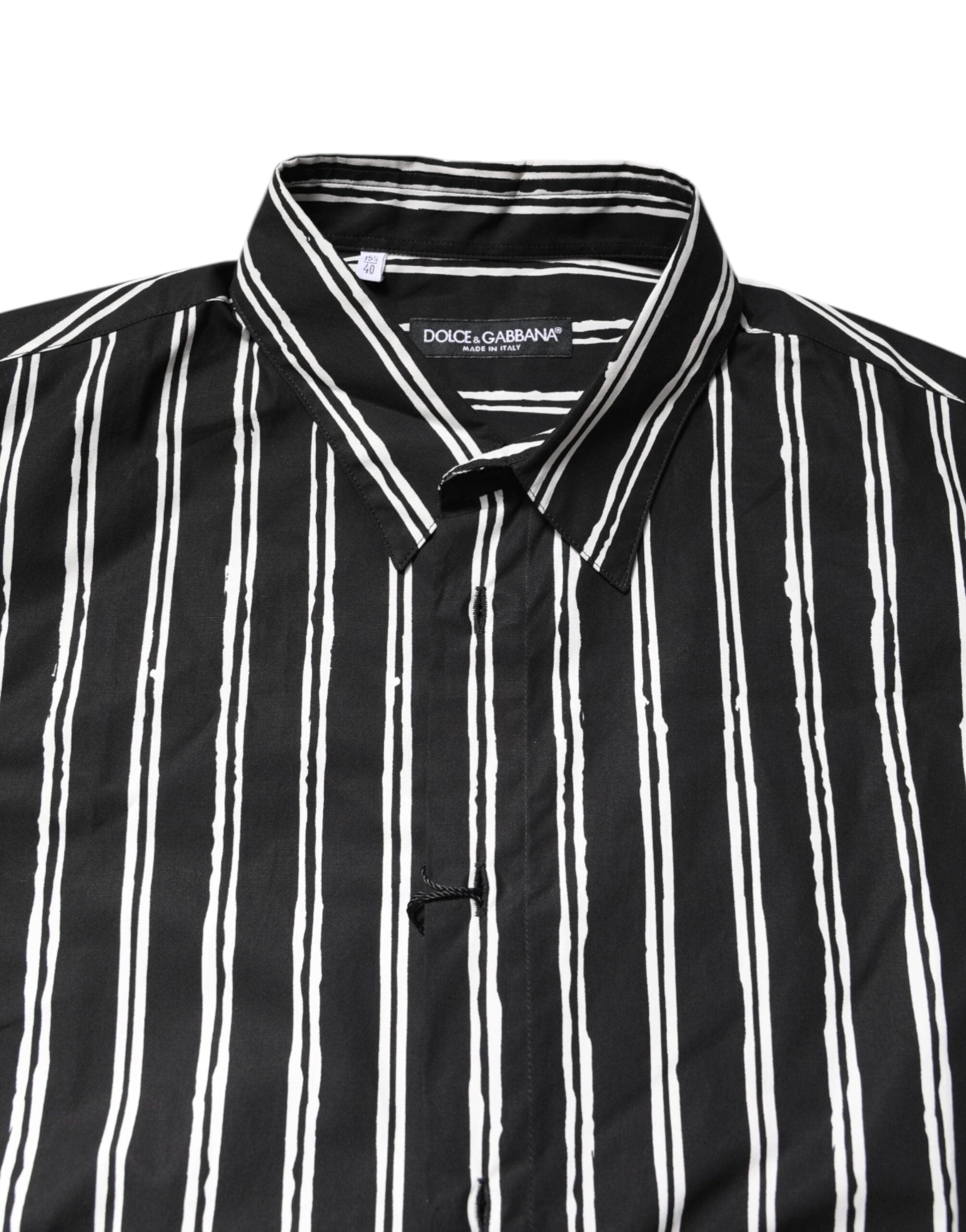 Dolce & Gabbana Black White Striped Cotton Dress Shirt