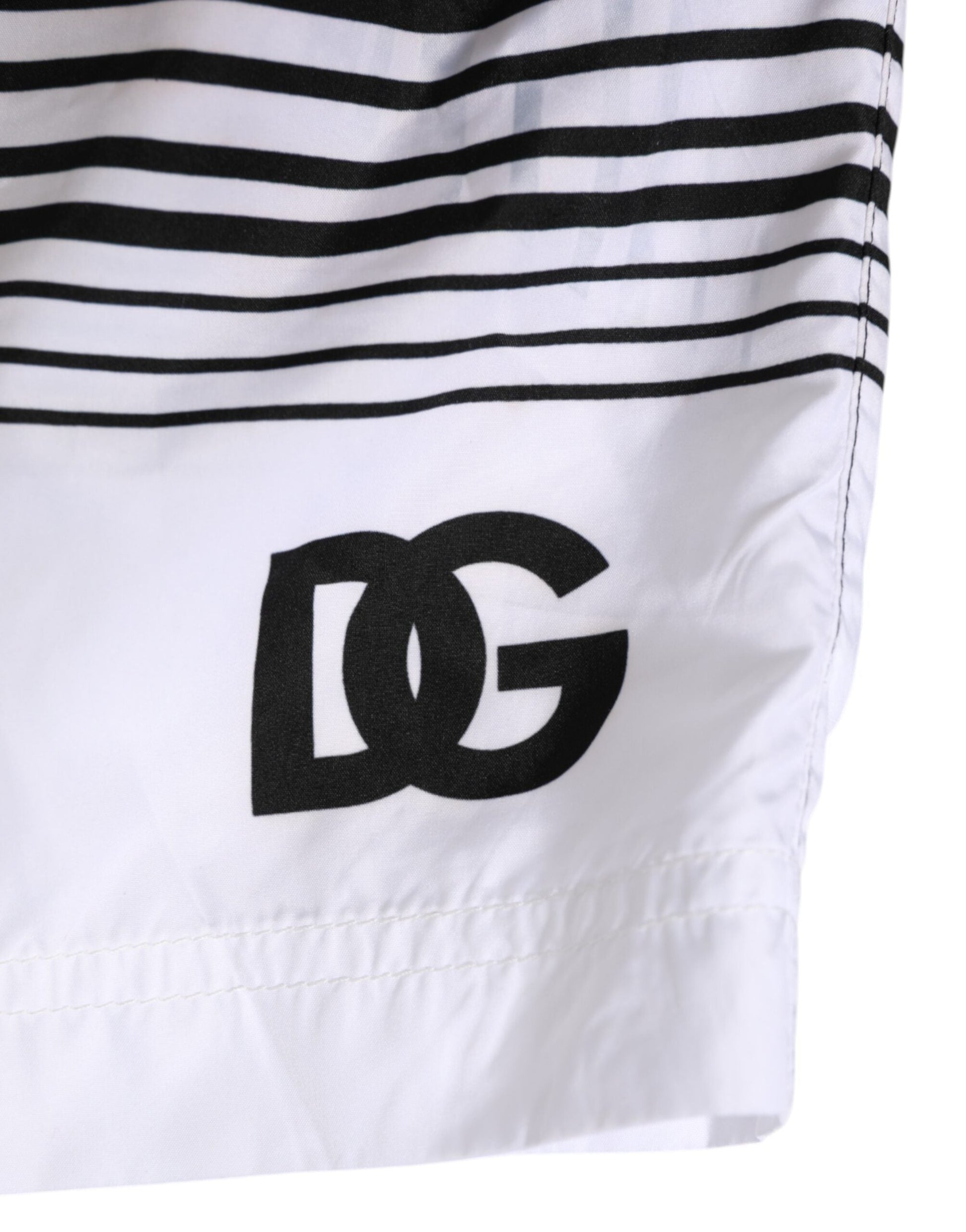 Dolce & Gabbana Black White Striped DG Logo Men Short Swimwear