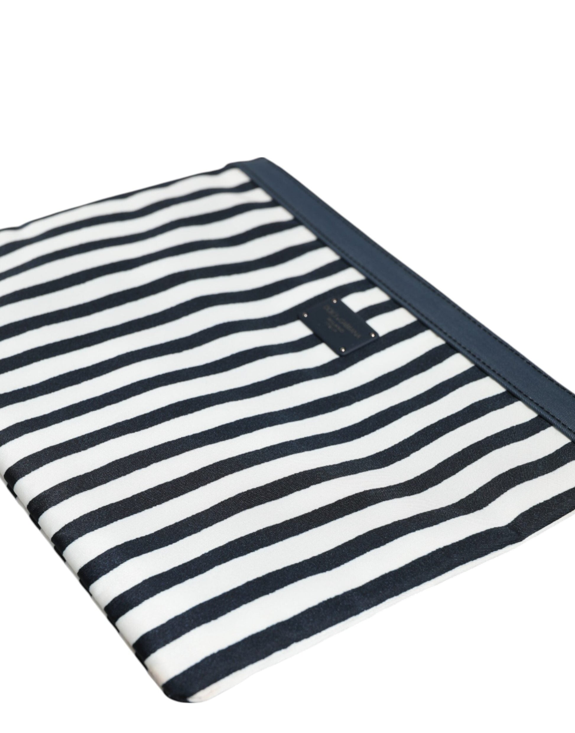 Dolce & Gabbana Black White Striped Logo Plaque Clutch Pouch Bag