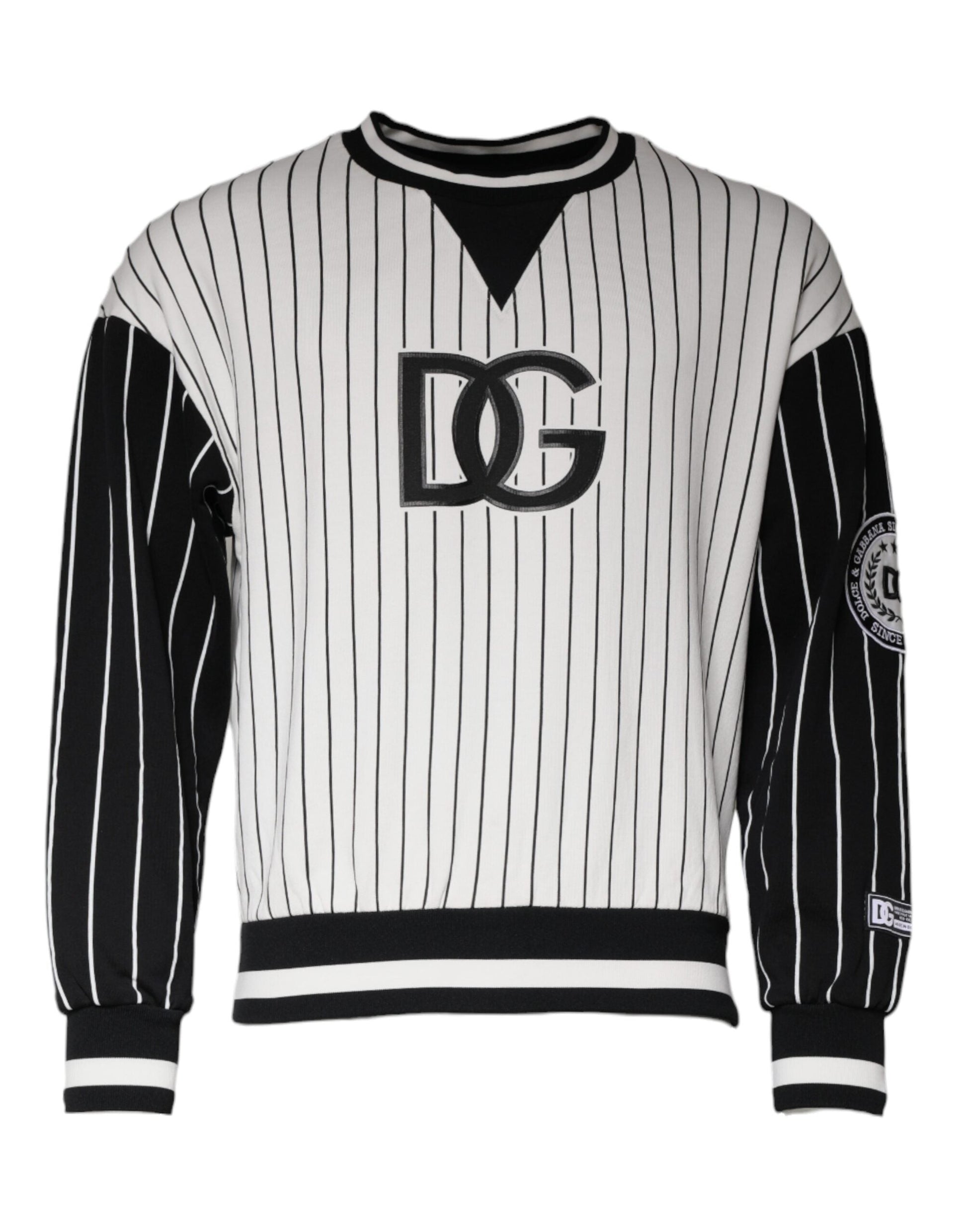 Dolce & Gabbana Black White Stripes Logo Sweatshirt Sweater
