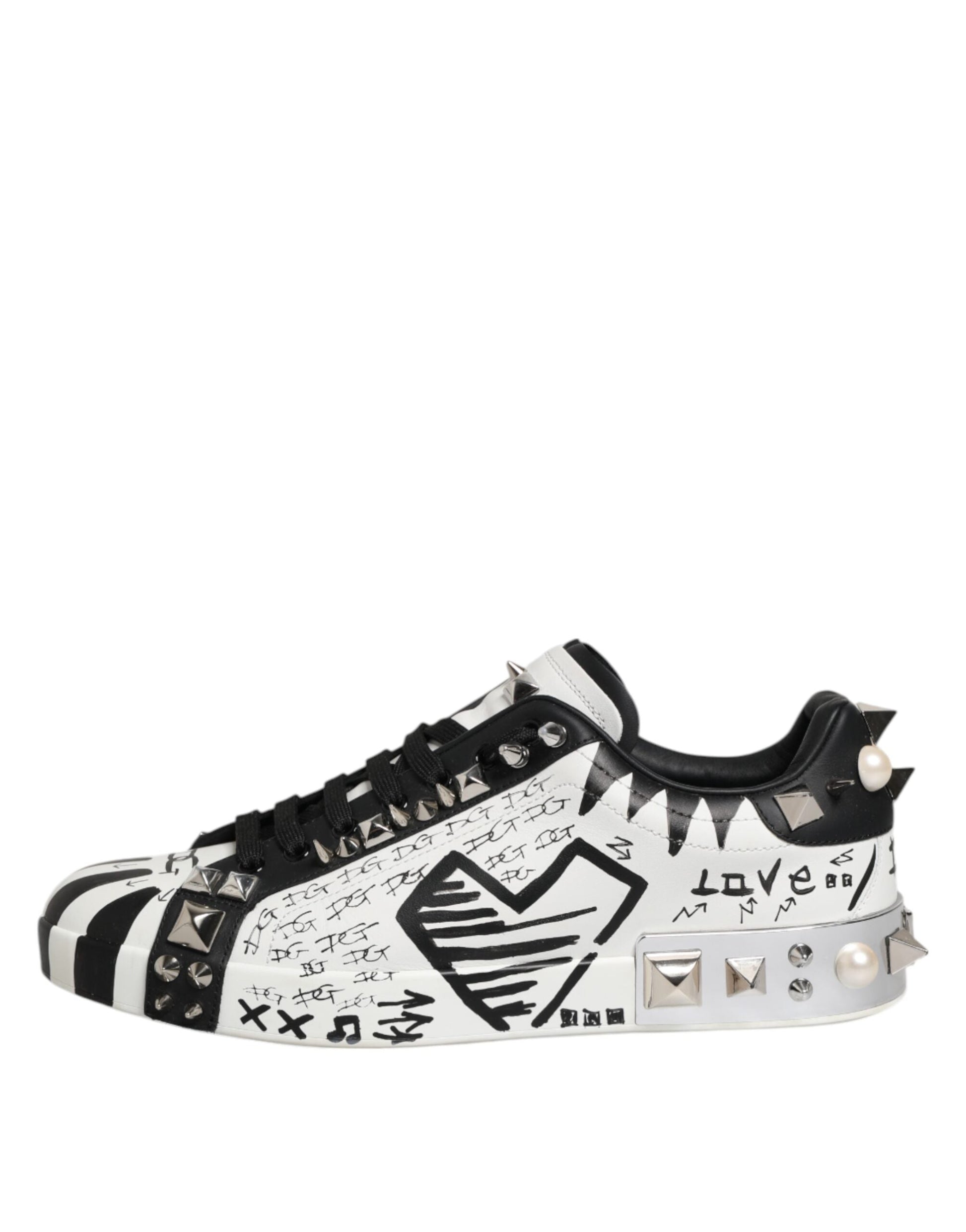 Dolce & Gabbana Black White Studded Low Top Sneakers Shoes