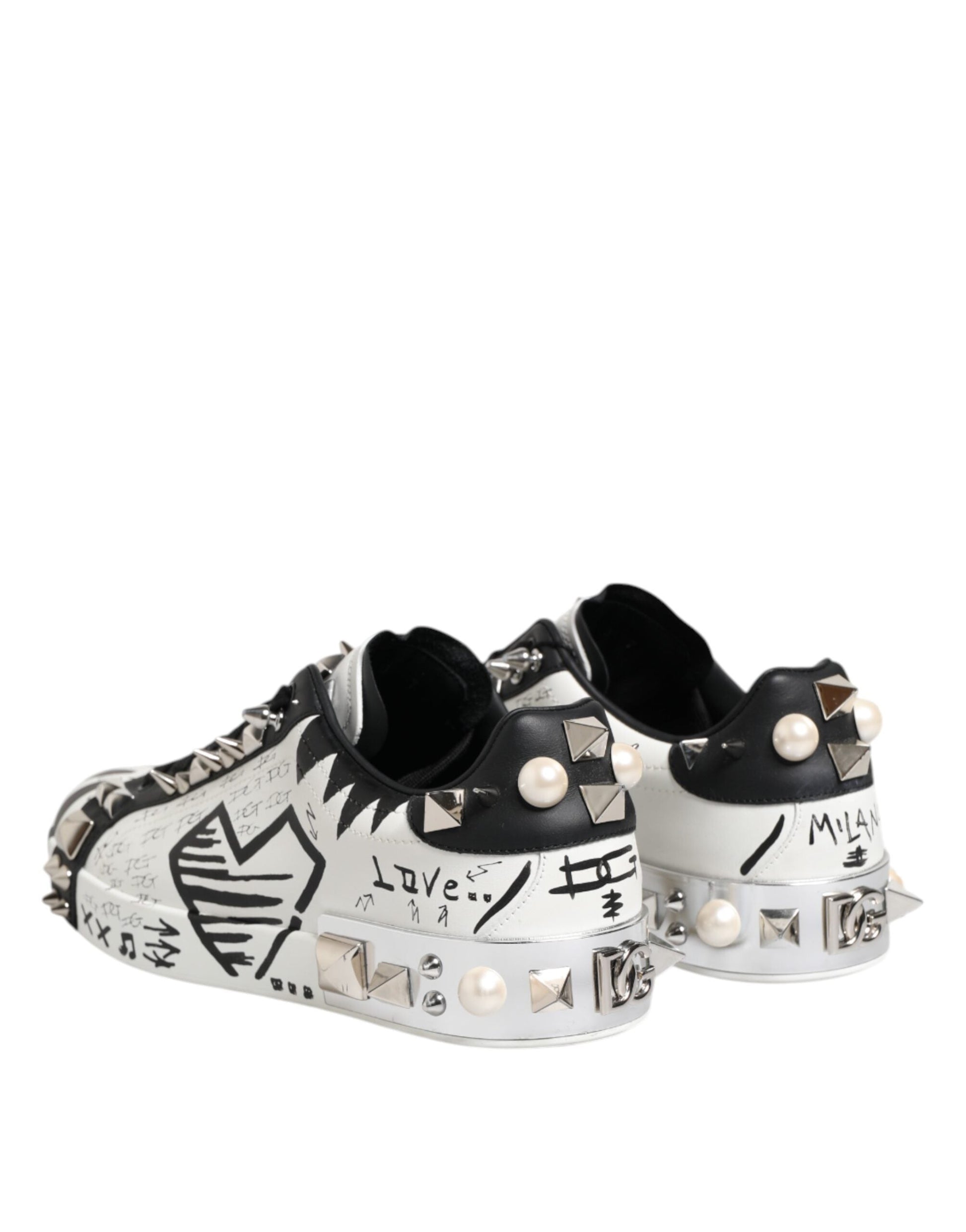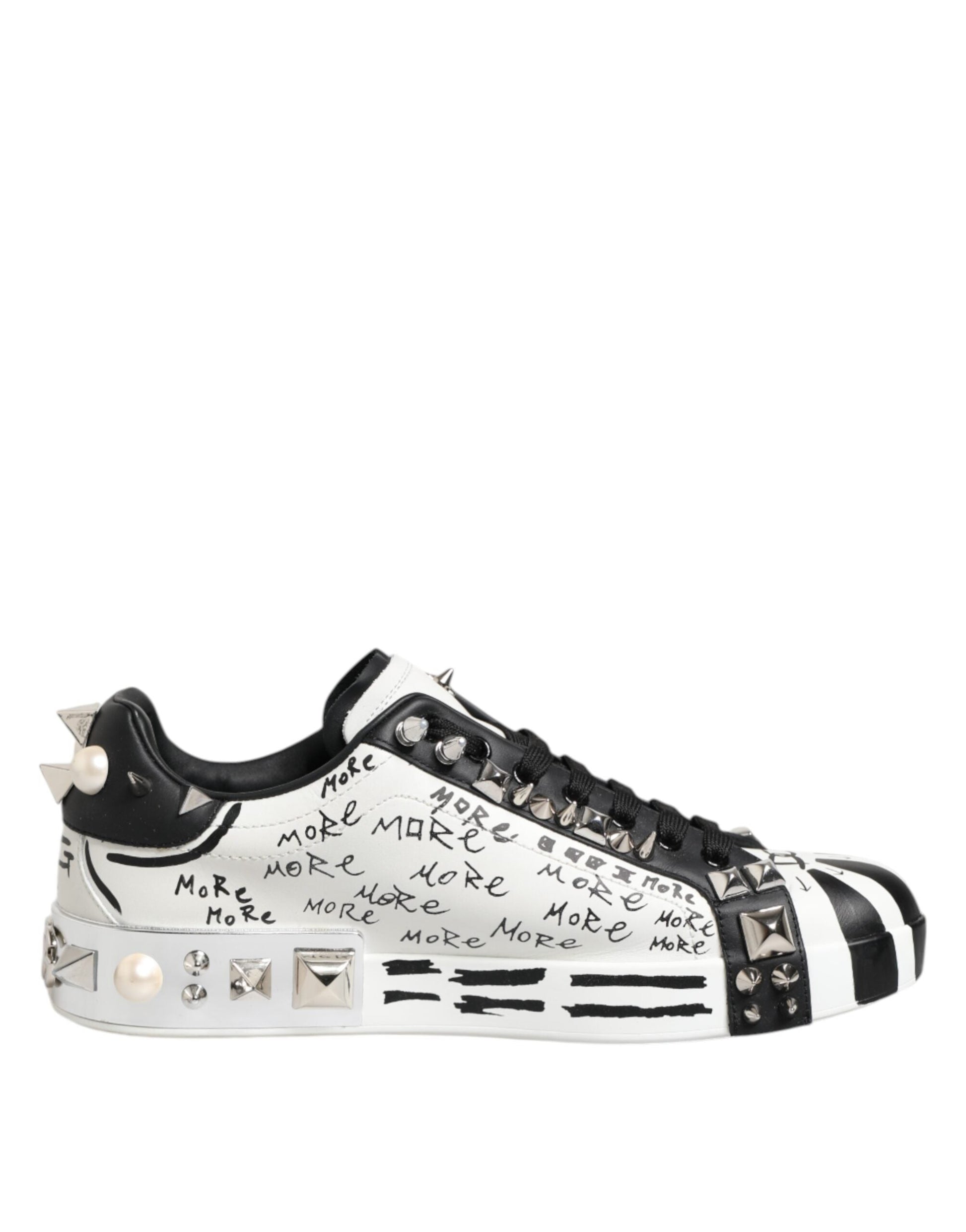 Dolce & Gabbana Black White Studded Low Top Sneakers Shoes