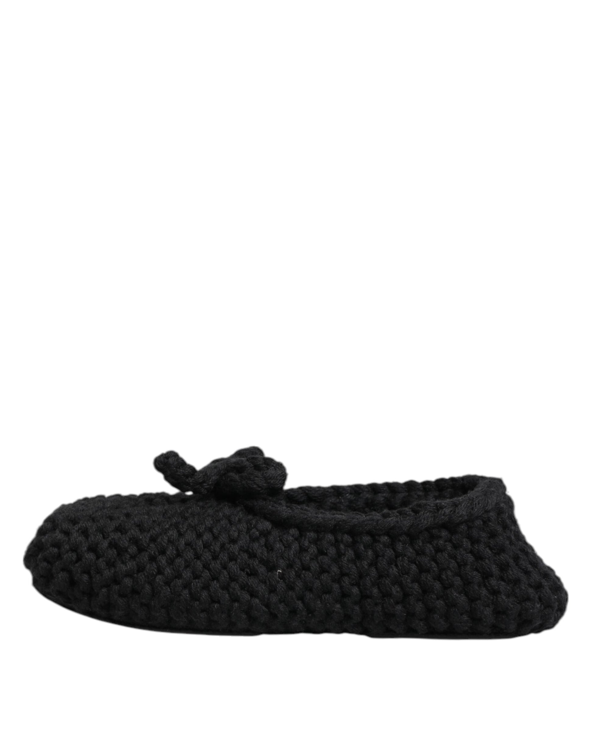Dolce & Gabbana Black Wool Knit Slip On Ballerina Flats Shoes