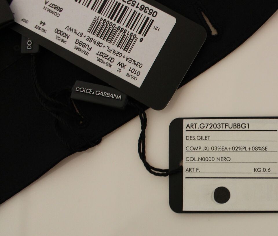 Absolutely stunning, 100% Authentic, brand new with tags Dolce & Gabbana black silk wool stretch Dress Vest. This item comes from the MainLine Dolce & Gabbana collection.