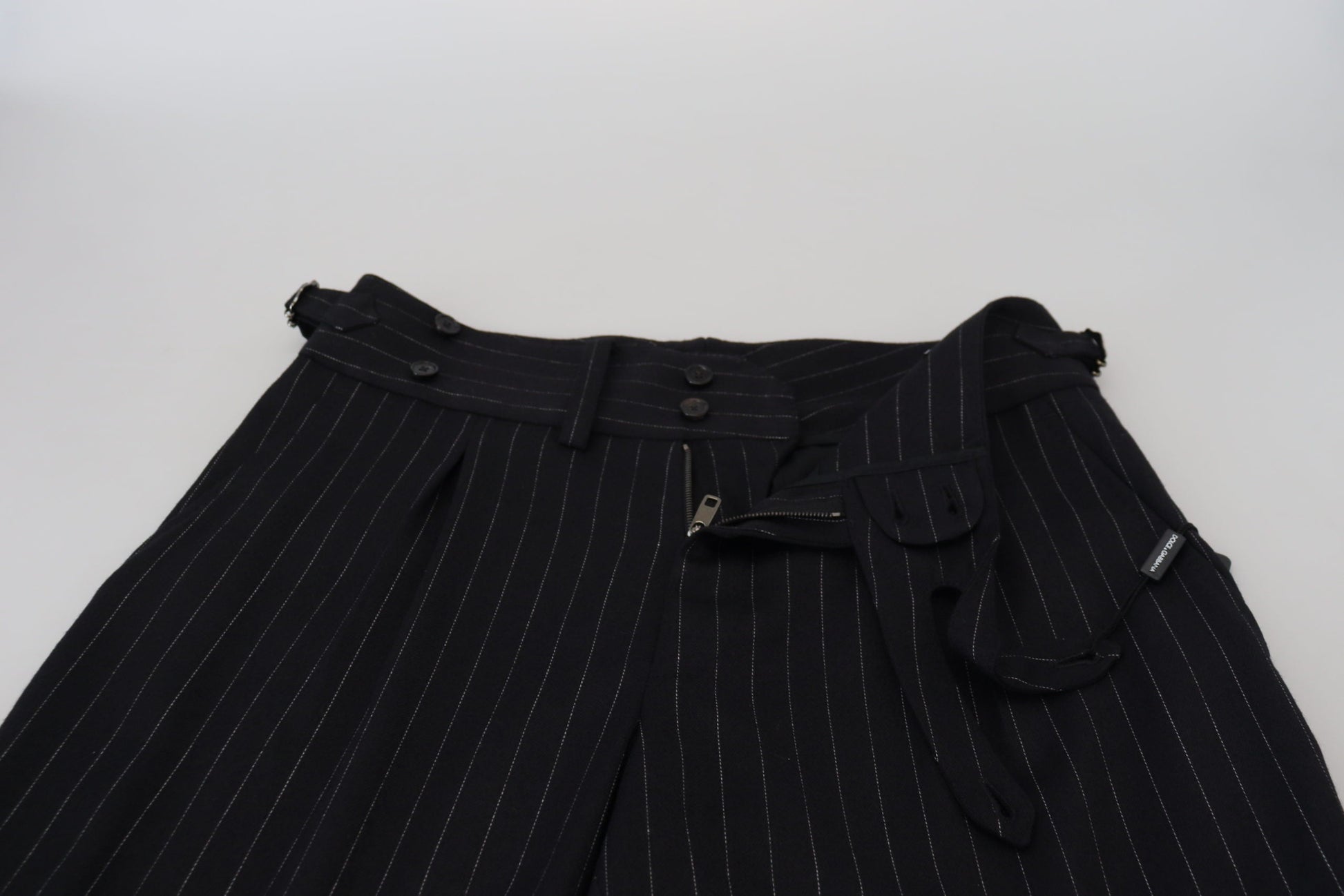 Dolce & Gabbana Black Wool Striped Chino Pants