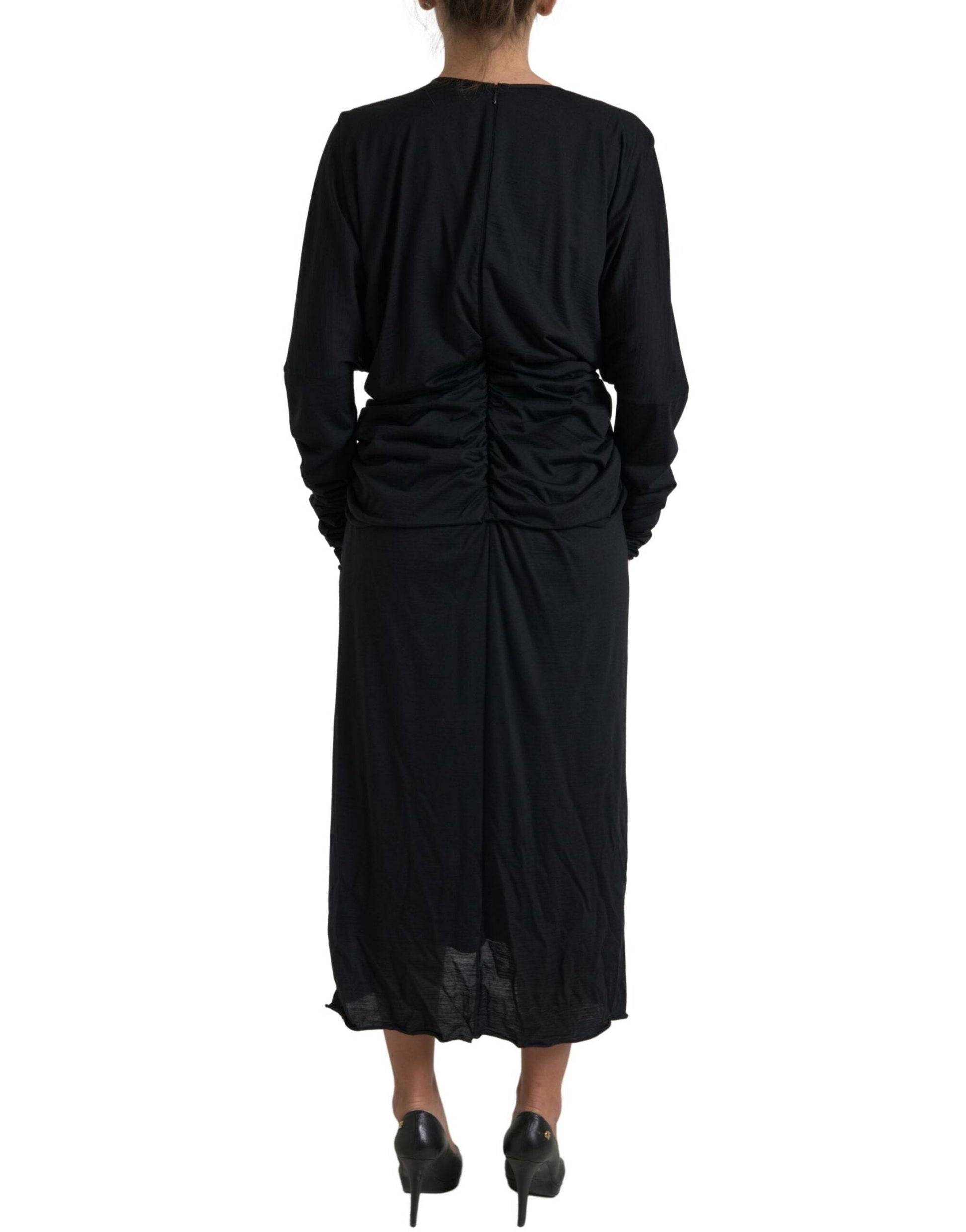 Dolce & Gabbana Black Wool Wrap Sheath Midi Gown Dress