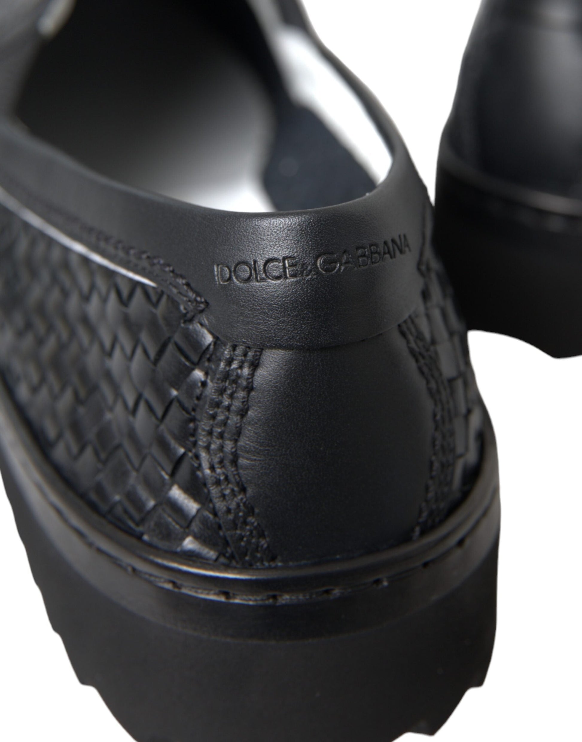 Dolce & Gabbana Black Woven Buffalo Leather Men Loafers Shoes