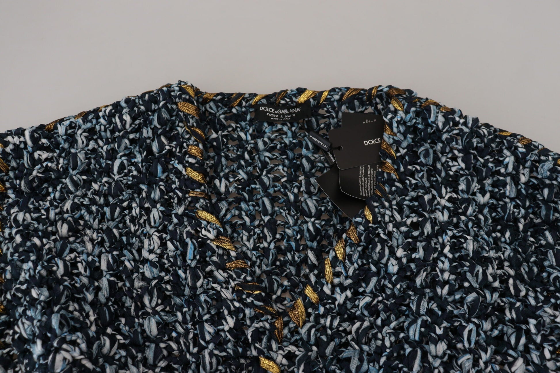 Dolce & Gabbana Blue Button Cardigan Fatto A Mano Sweater