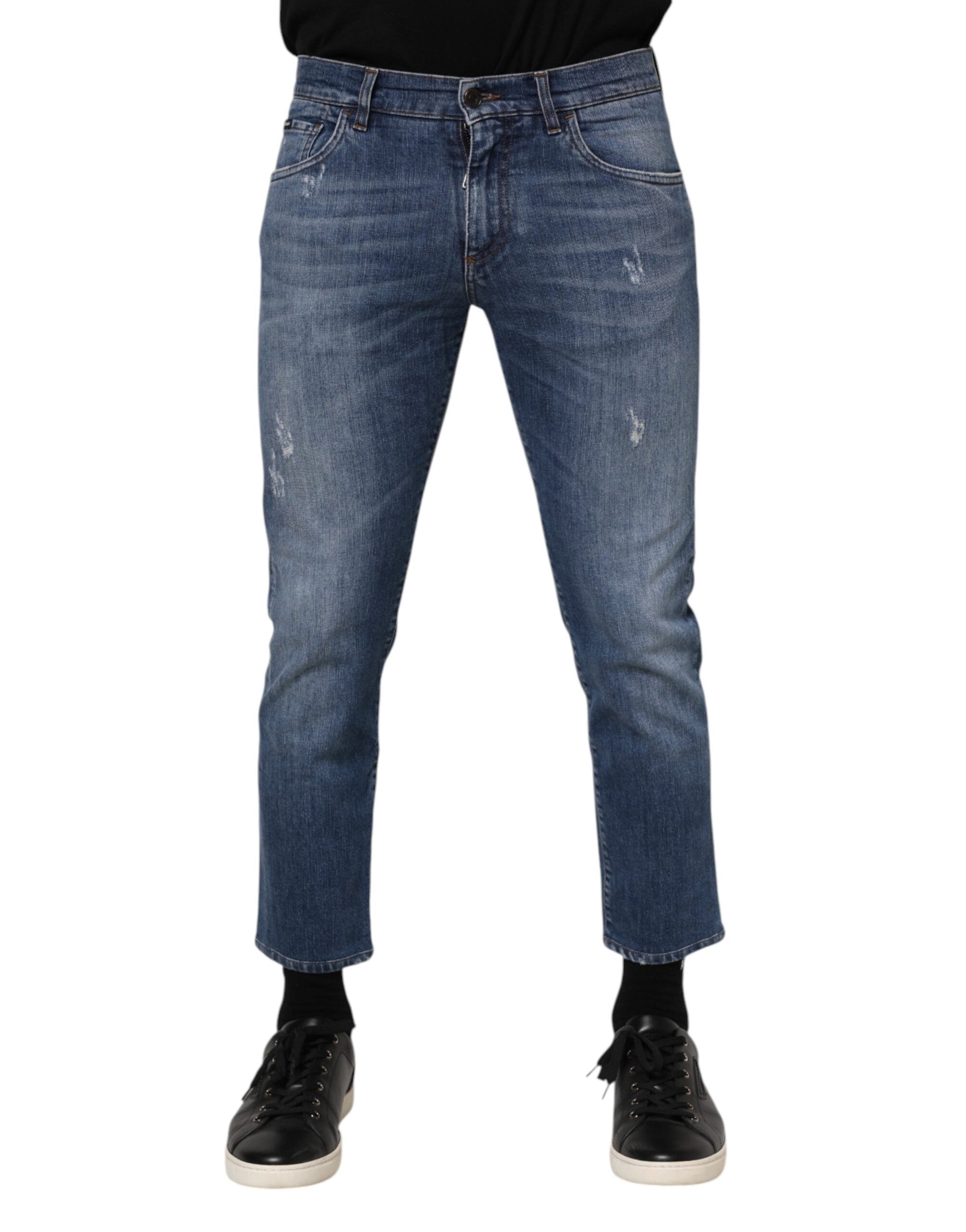 Dolce & Gabbana Blue Cotton Logo Plaque Denim Jeans