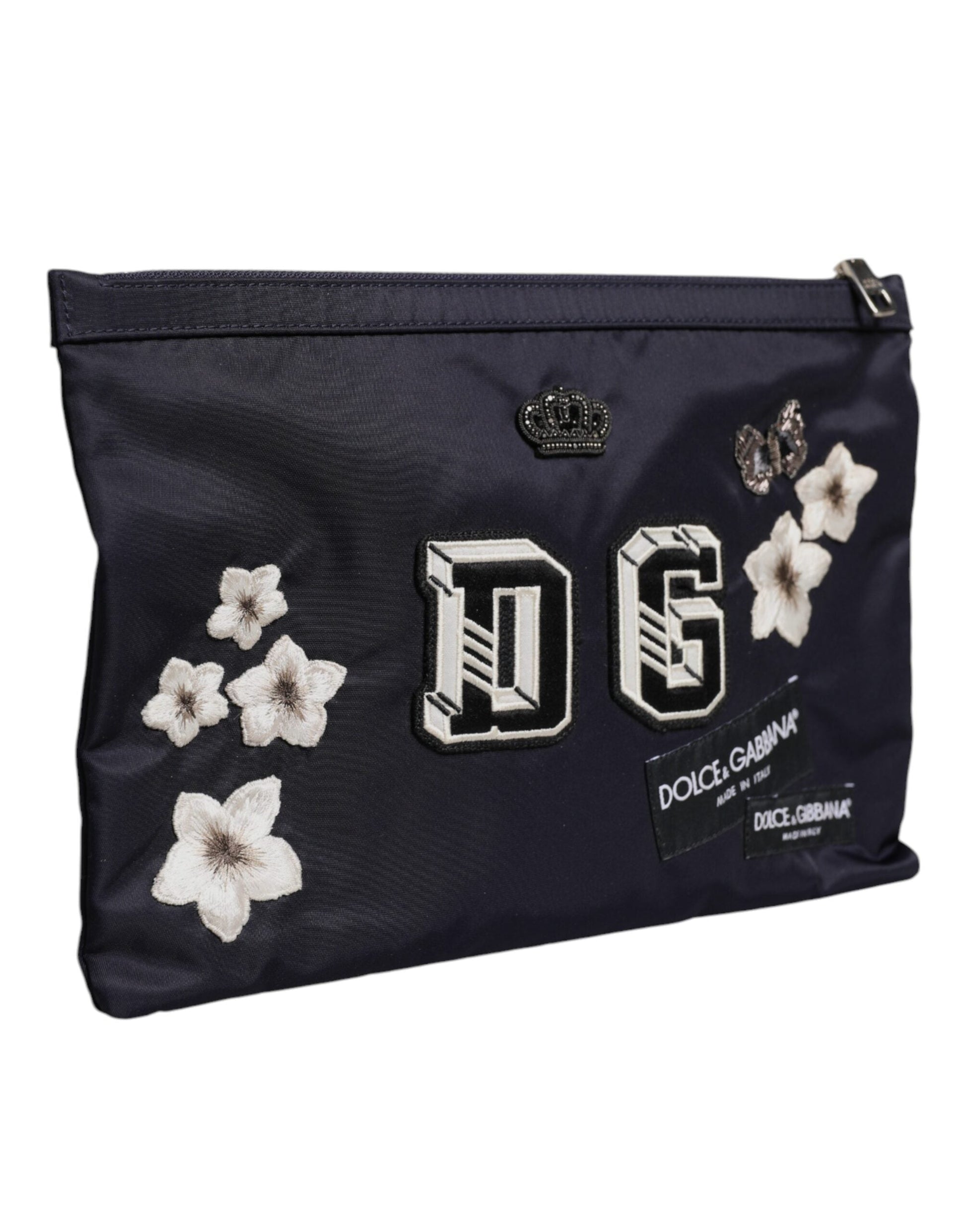 Dolce & Gabbana Blue DG Logo Patch Embellished Pouch Clutch Bag