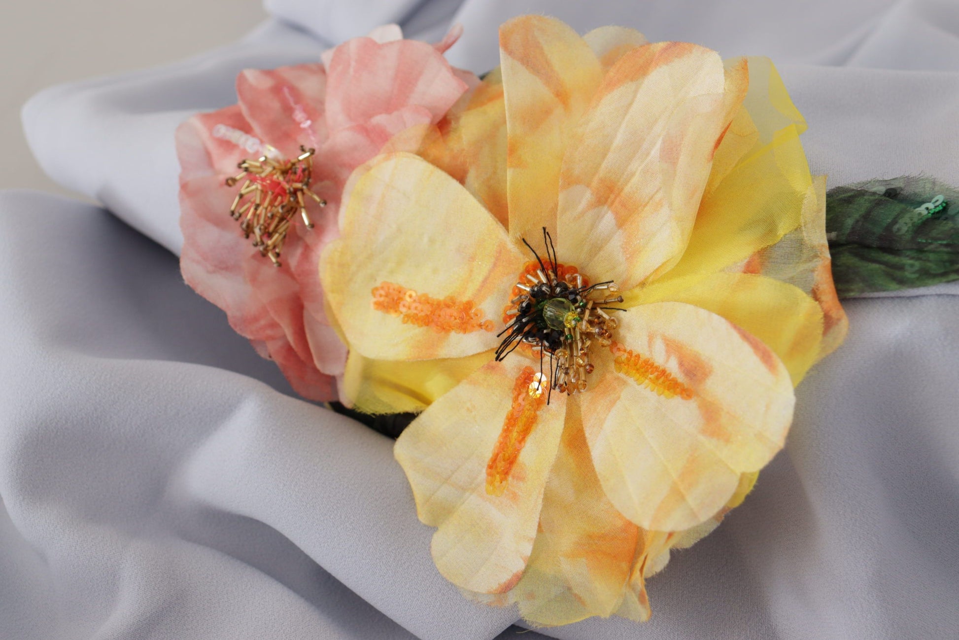 Dolce & Gabbana Blue Floral Applique Midi Viscose Dress
