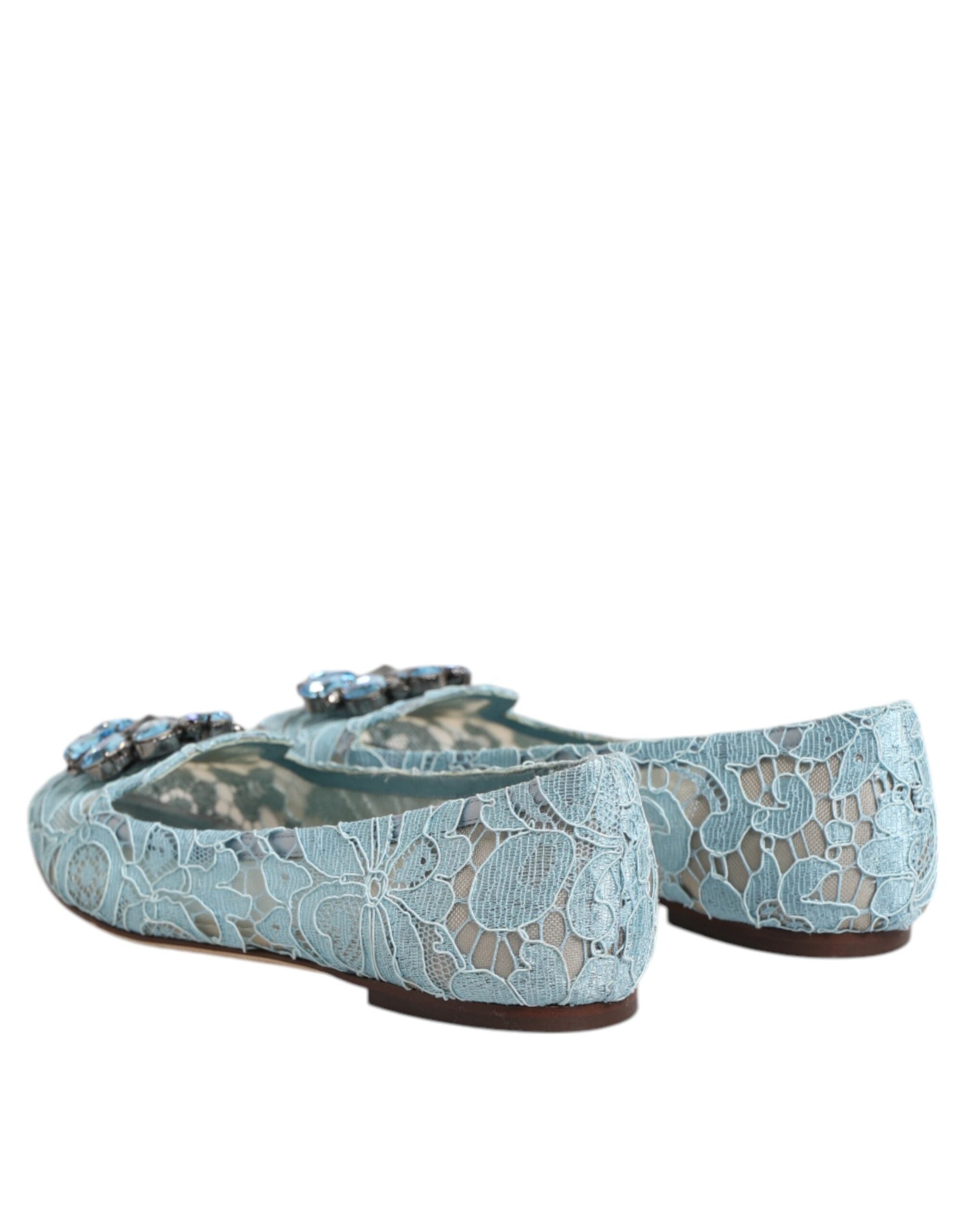 Dolce & Gabbana Blue Lace Crystal Ballet Flats Loafers Shoes