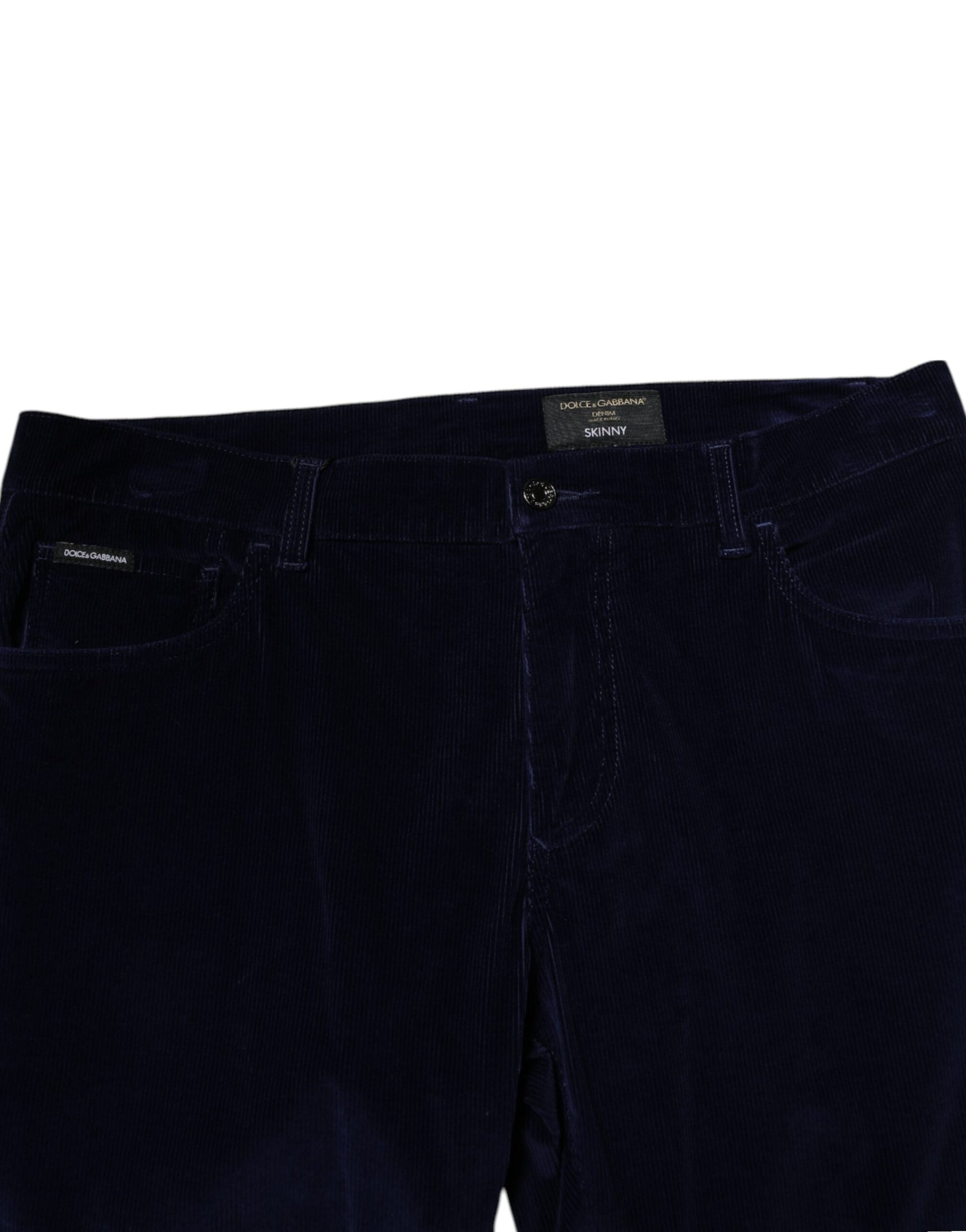 Dolce & Gabbana Navy Blue Cotton Tapered Formal Trouser Pants