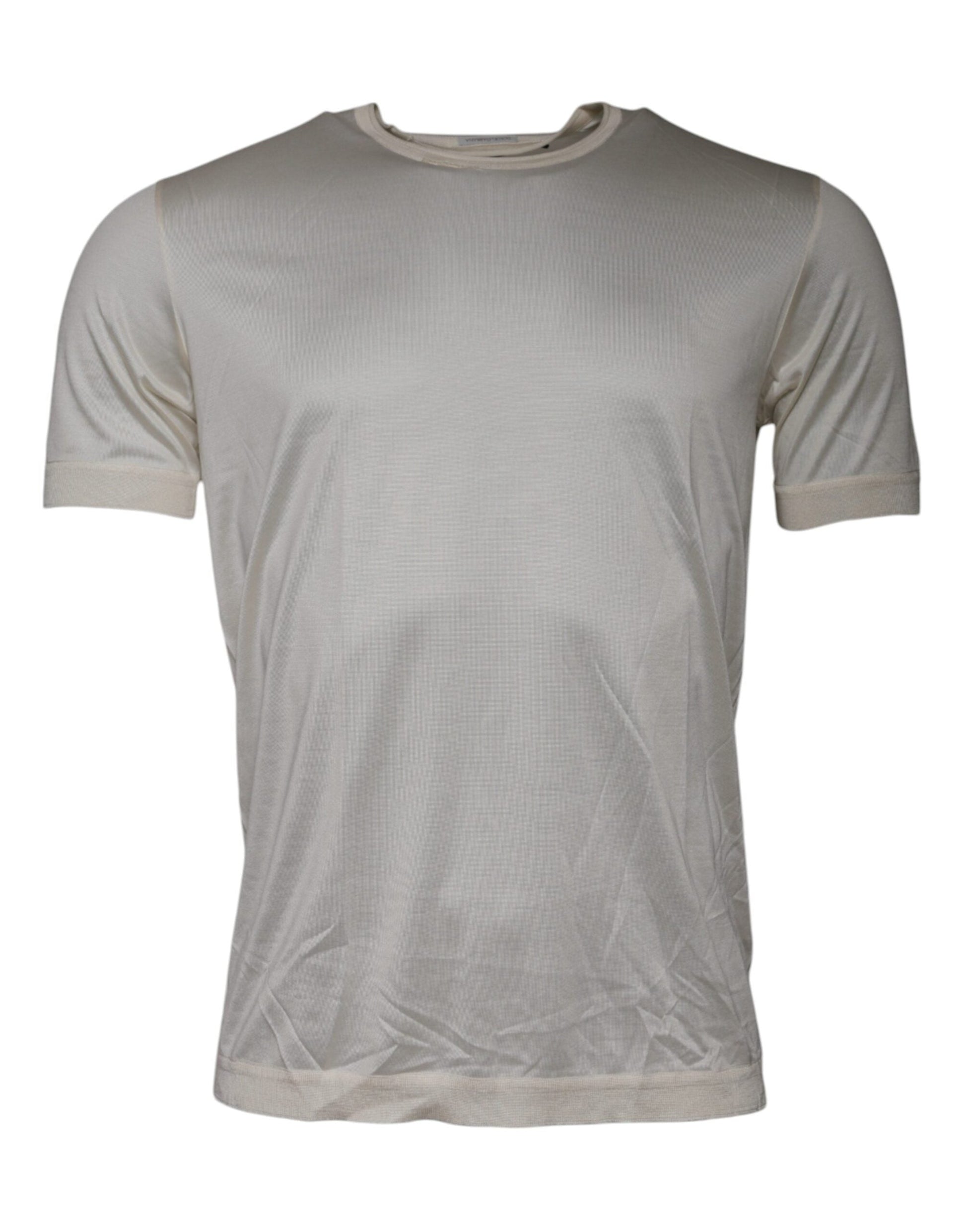 Dolce & Gabbana Off White Silk Crew Neck Short Sleeve T-shirt