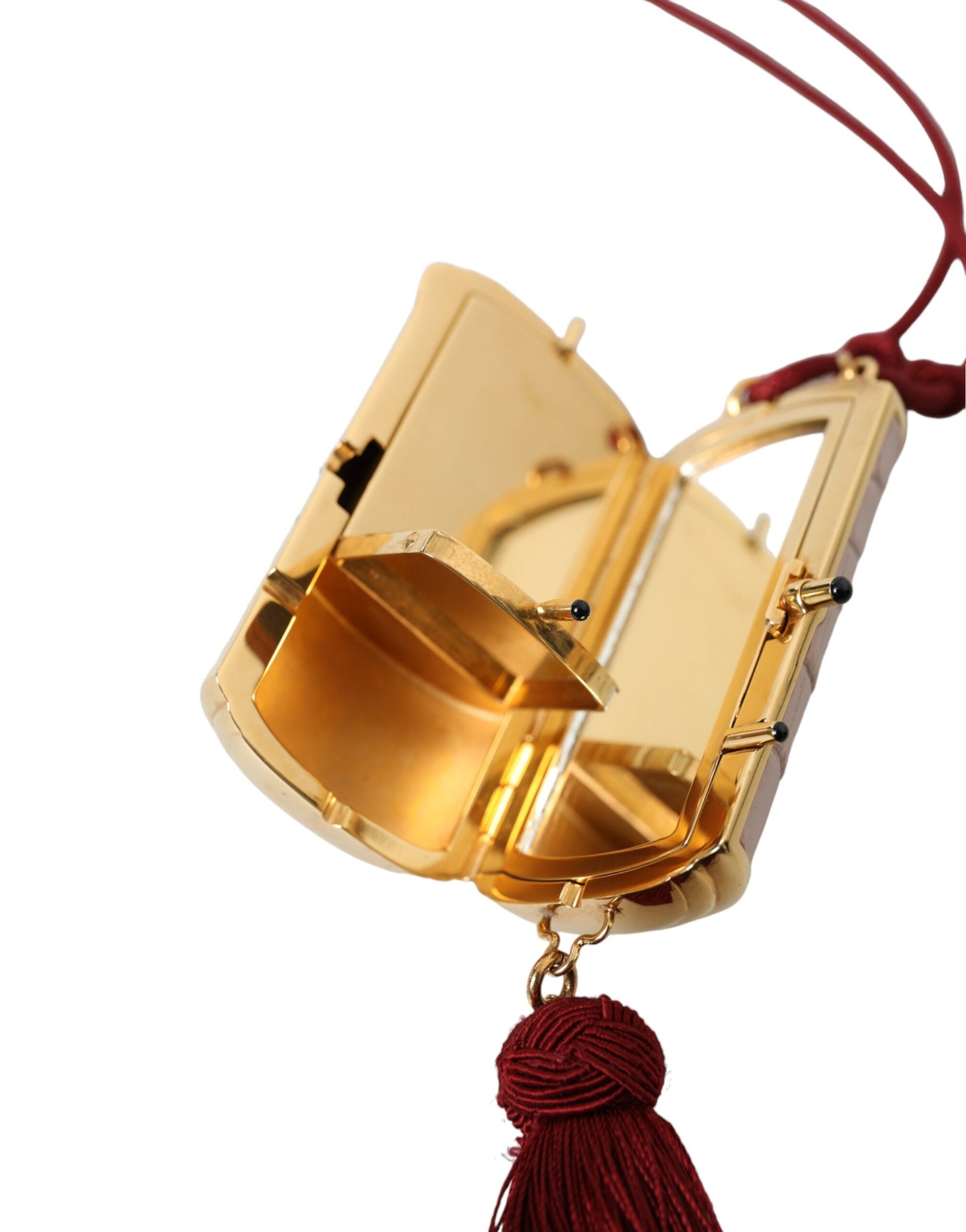 Dolce & Gabbana Pink Exotic Leather Mini Mirror Tassel Makeup Bag