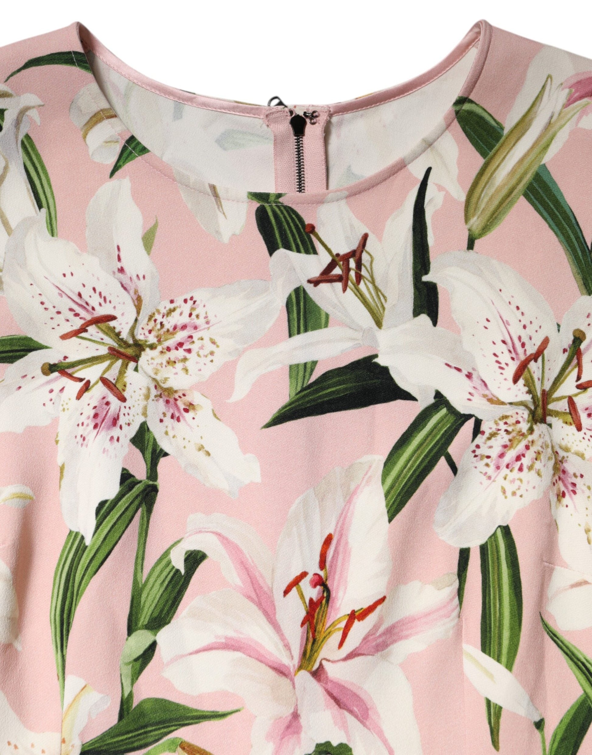 Dolce & Gabbana Pink Lily Print Viscose Round Neck Blouse Top