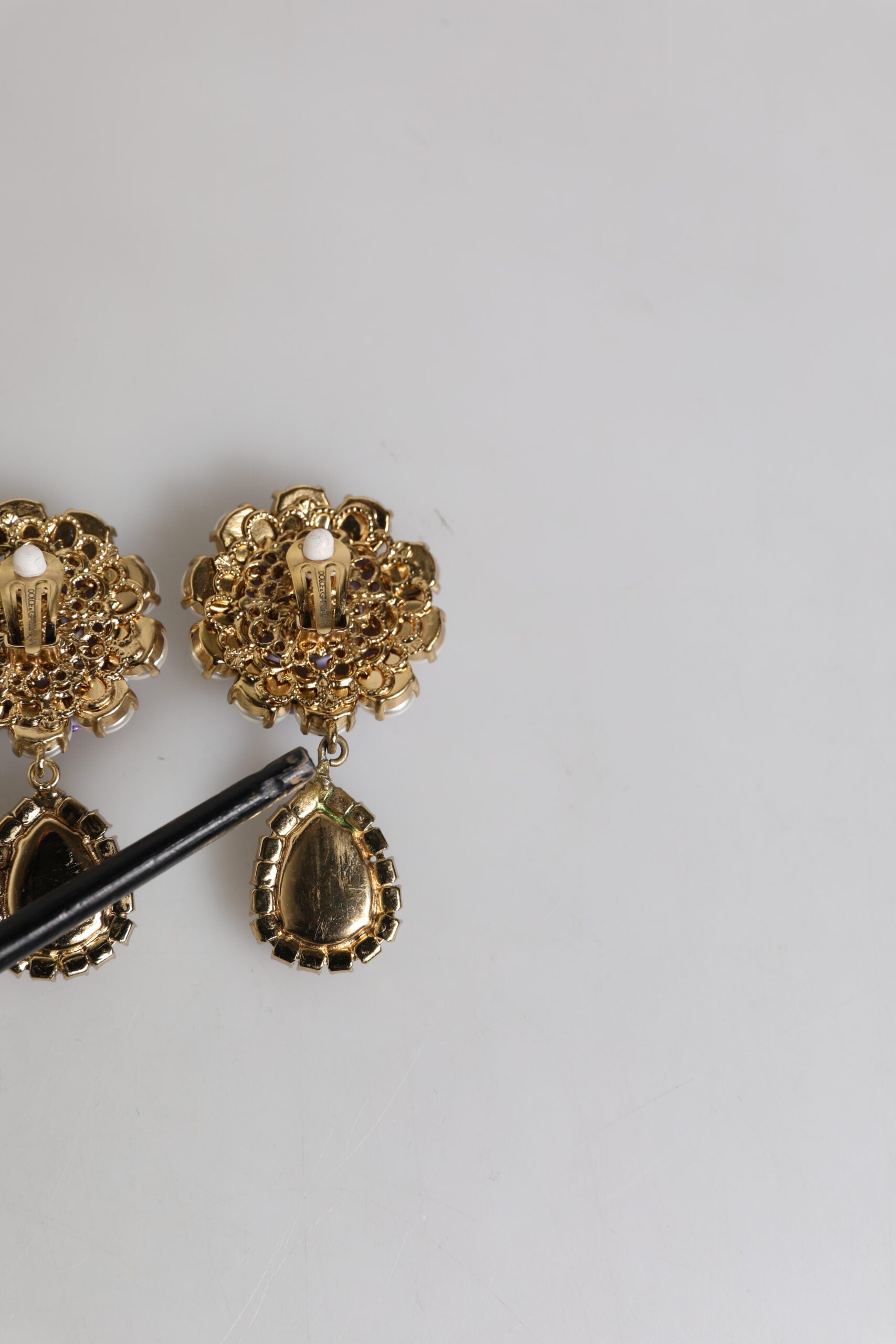 Dolce & Gabbana Purple Flower Pearl Teardrop Crystals Clip On Earrings