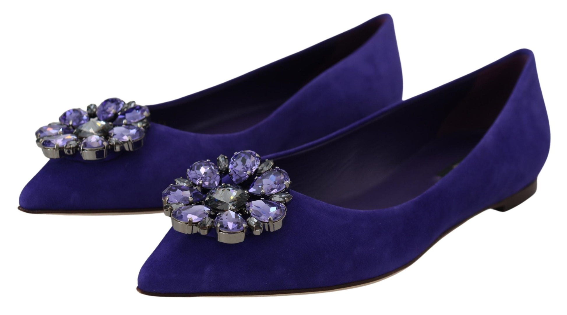 Gorgeous, brand new with tags 100% Authentic Dolce & Gabbana Flats Suede Shoes with embellished crystals featuring a pointed toe, slip on and leather sole.