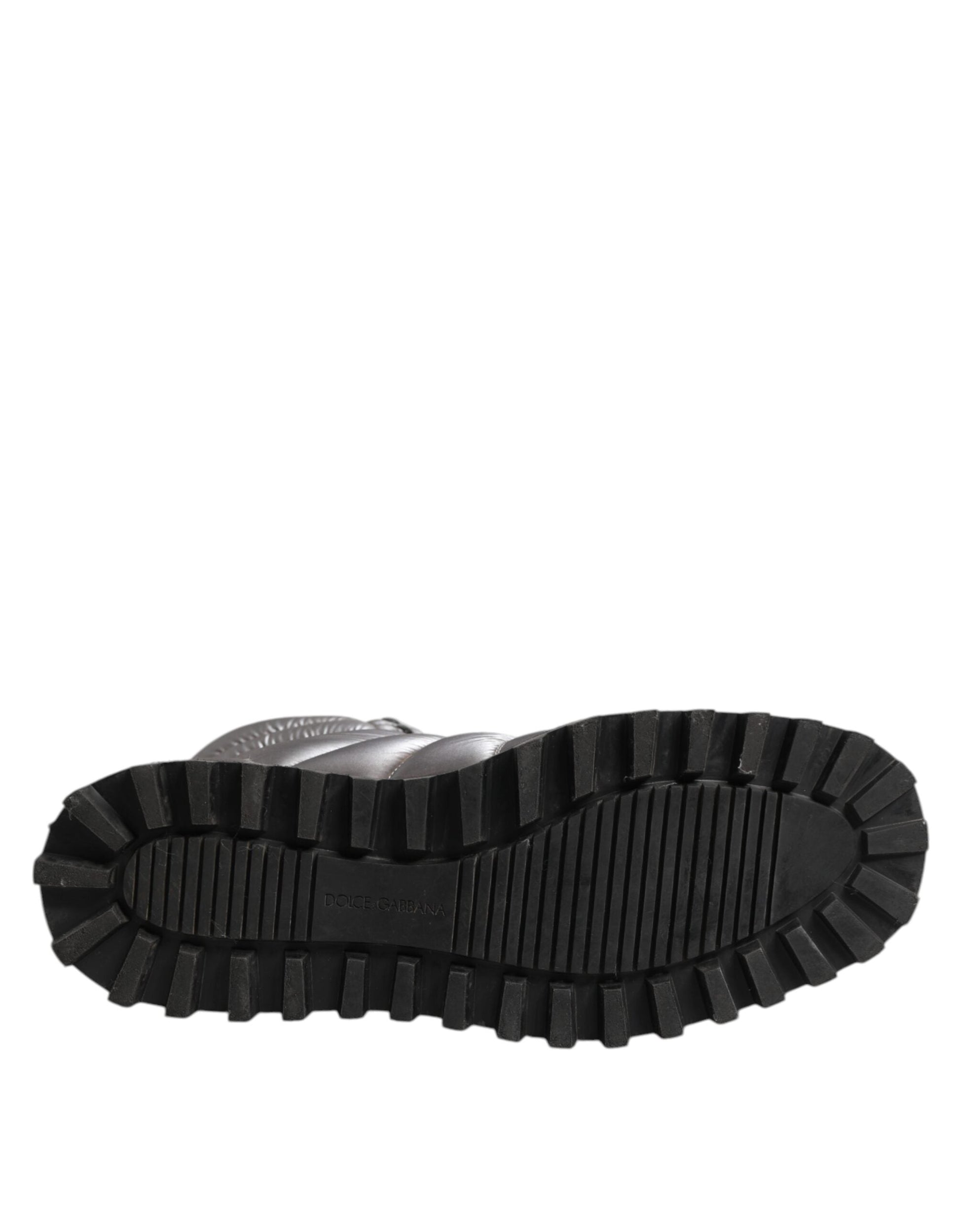 Dolce & Gabbana Silver Padded Mid Calf Lace Up Boots Shoes