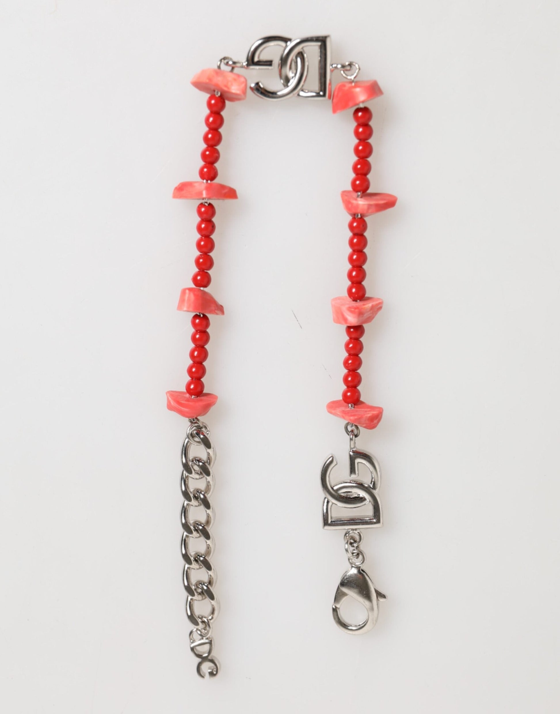 Dolce & Gabbana Silver Tone Brass Beaded Resin DG Logo Chain Men Bracelet