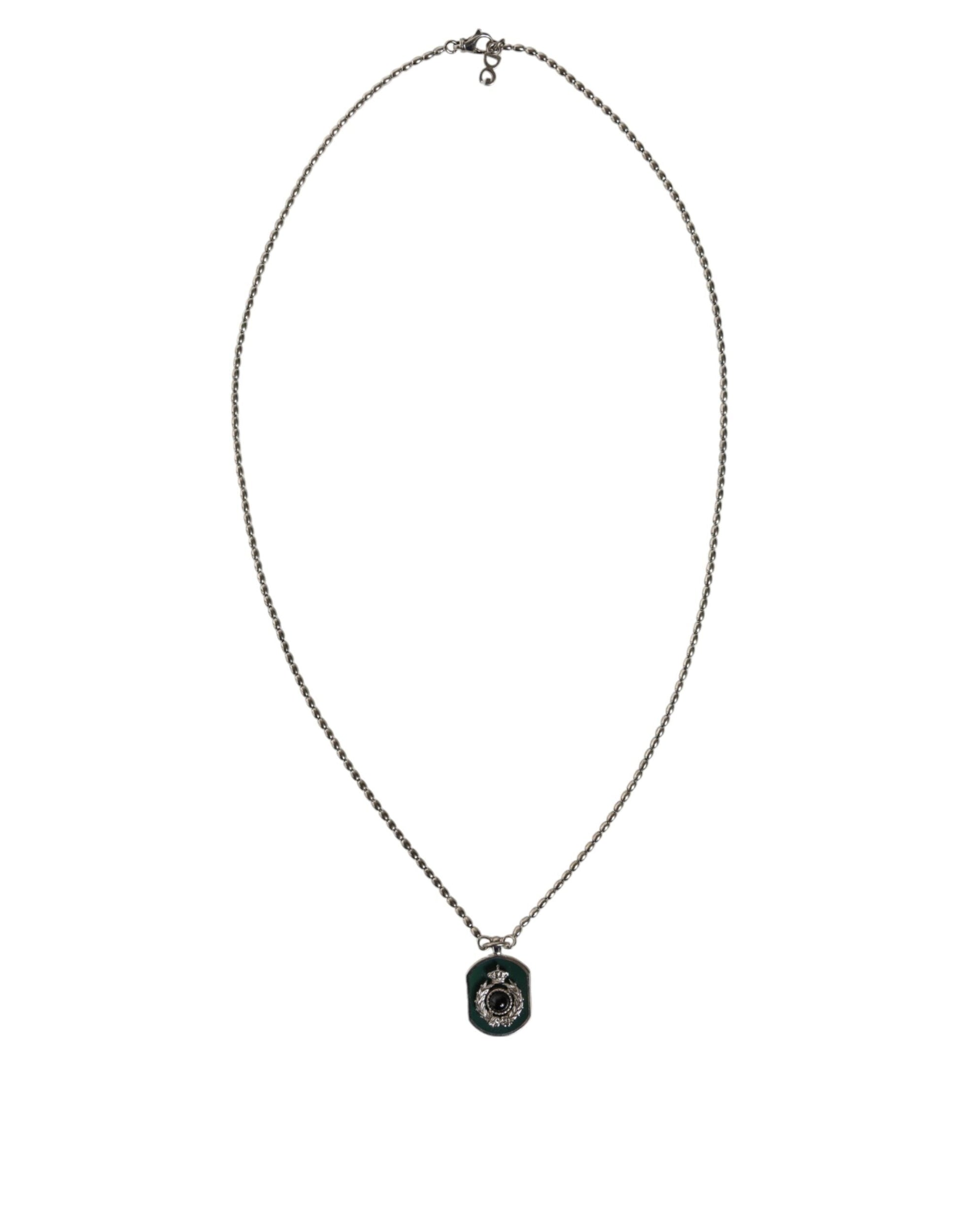 Dolce & Gabbana Sterling Silver 925 Chain Bar Gem Pendant Logo Necklace