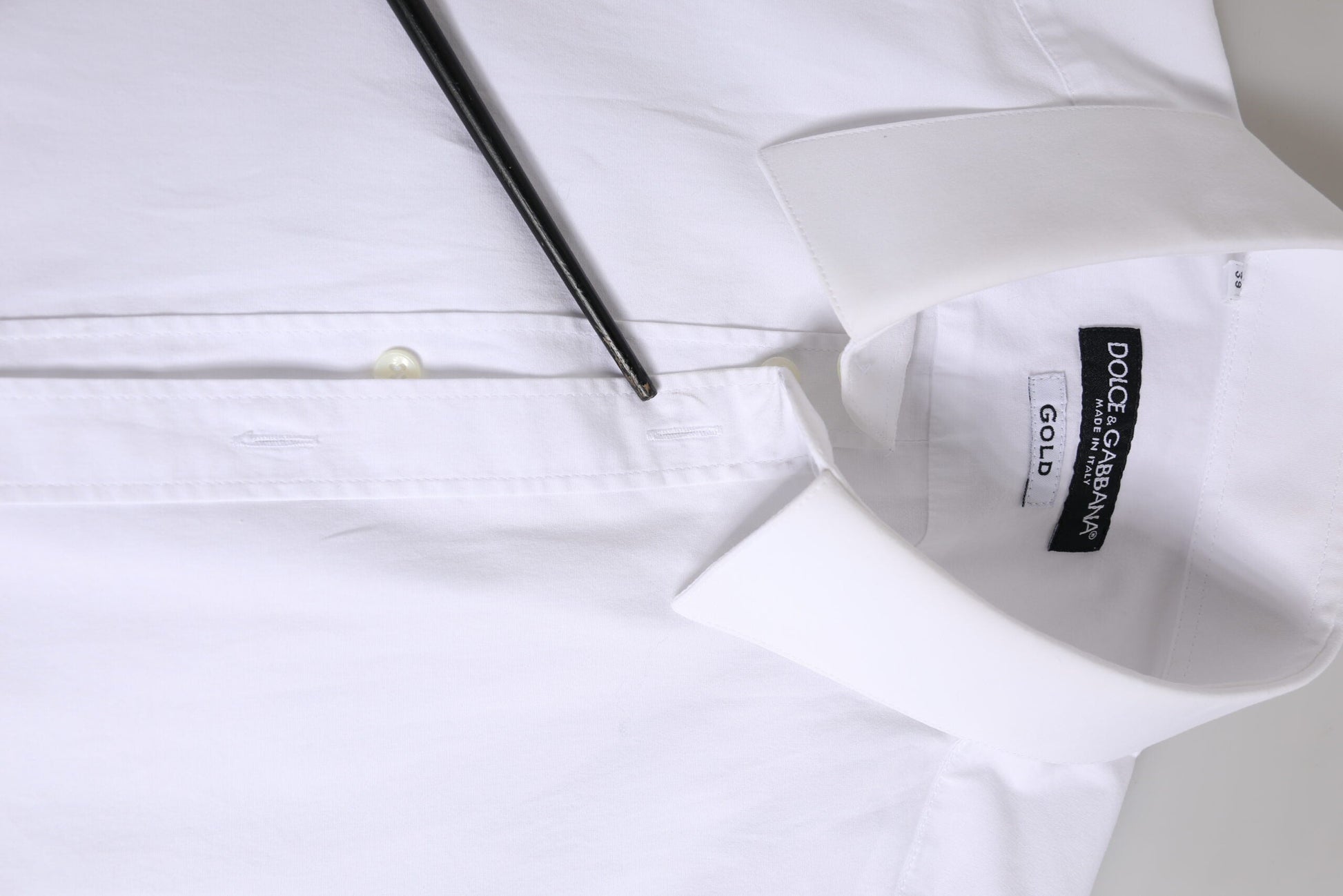 Dolce & Gabbana White Cotton GOLD Long Sleeve Men Dress Shirt