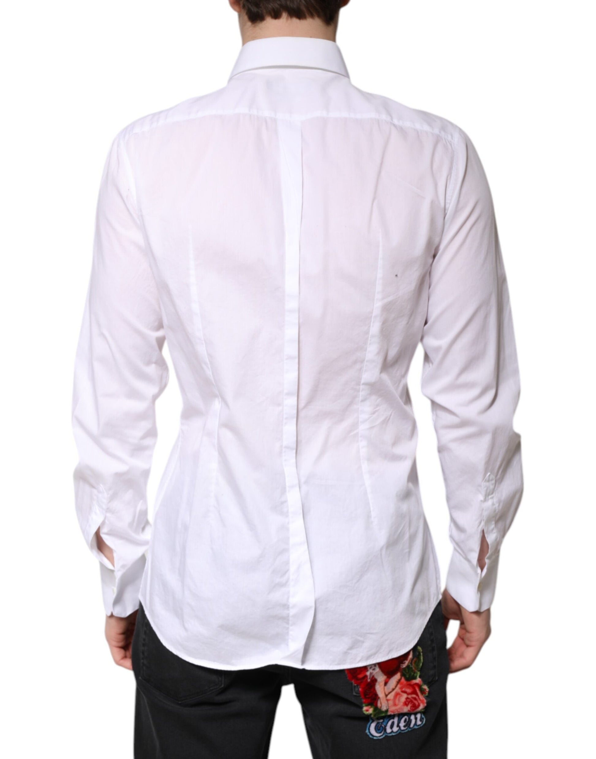 Dolce & Gabbana White GOLD Cotton Poplin Bib Men Dress Shirt