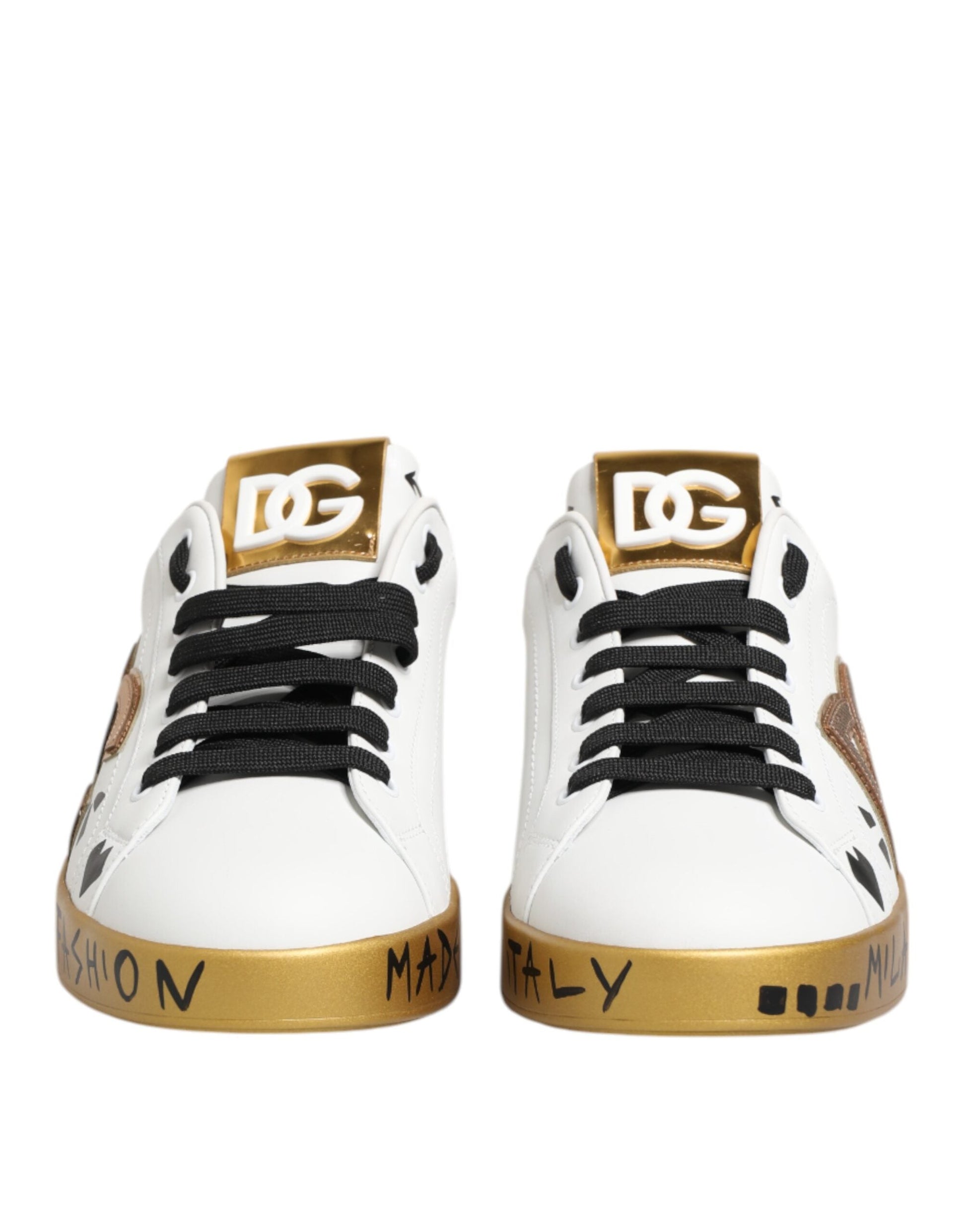 Dolce & Gabbana White Gold Crystal Portofino Sneakers Shoes